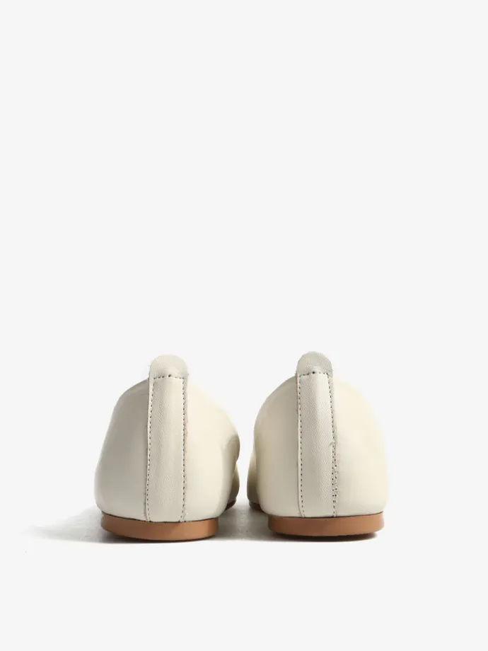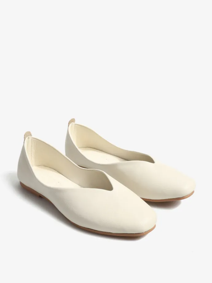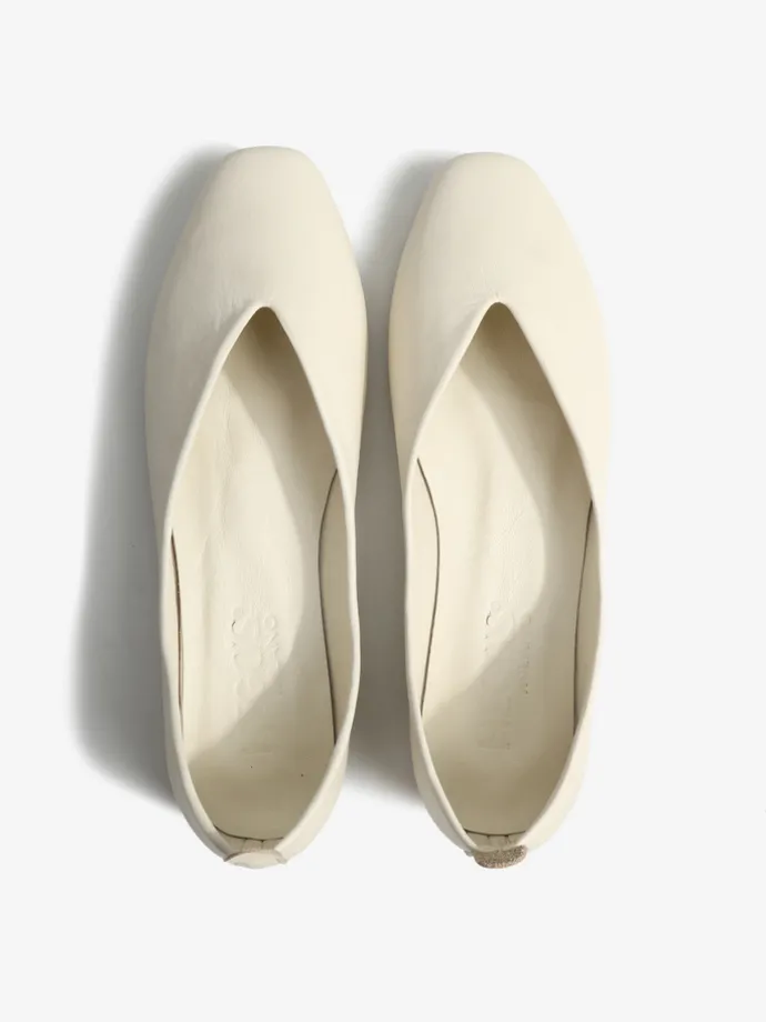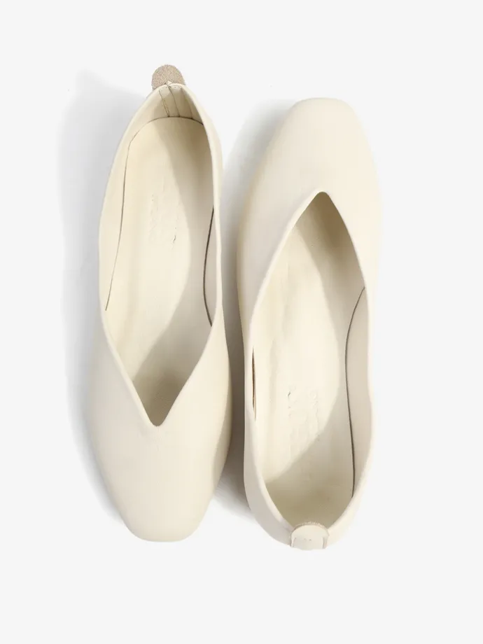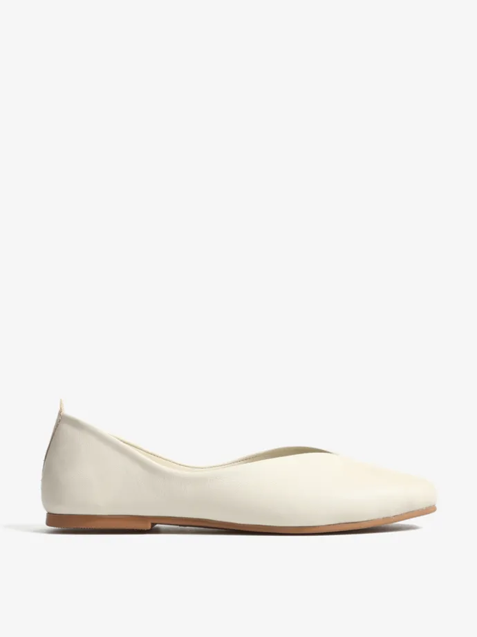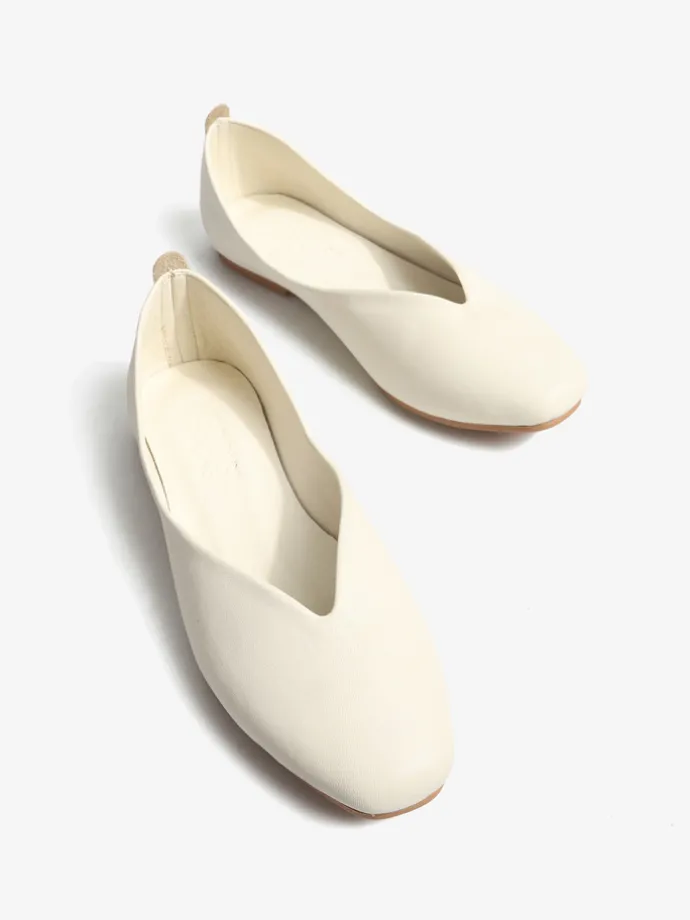 Baleriny wykonane z delikatnej, miękkiej skóry. Kwadratowy nosek i głębokie wycięcie w szpic.