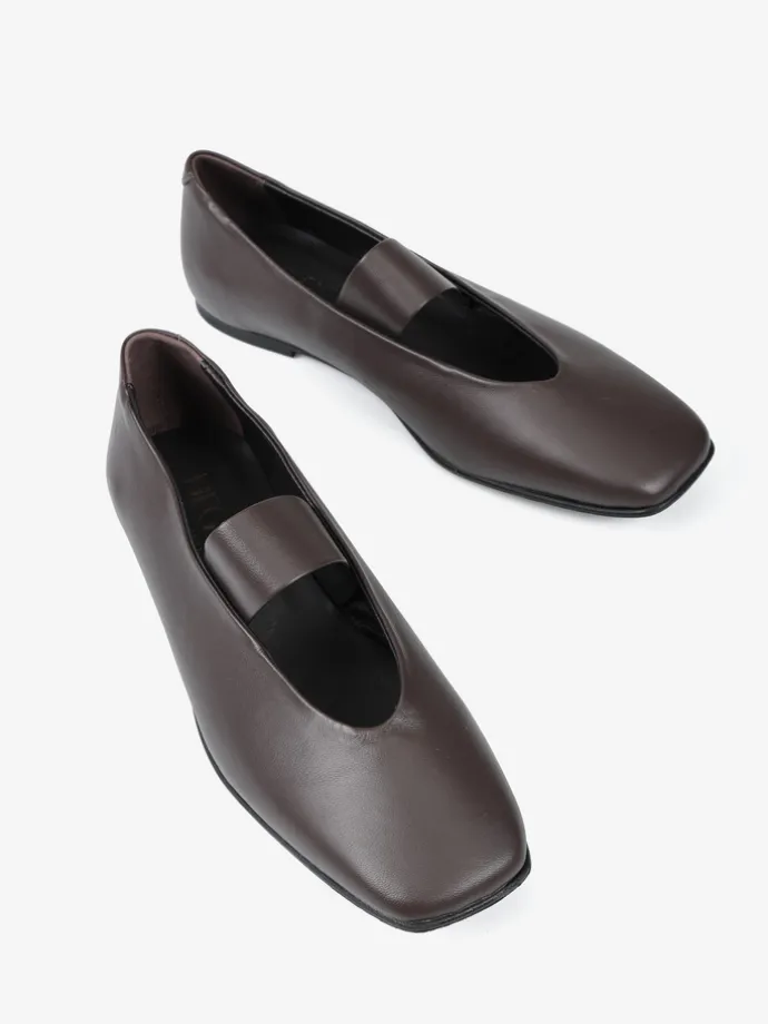 Brązowe baleriny Mary Jane wykonane z miękkiej i delikatnej skóry. Kwadratowe noski i pasek na podbiciu.