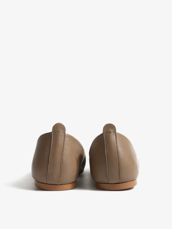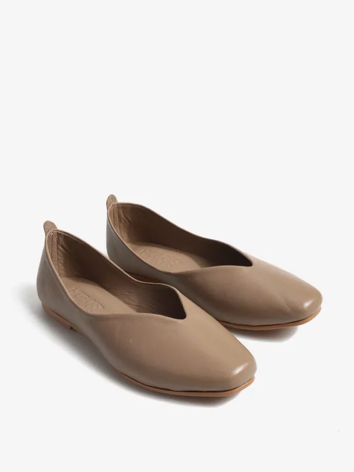 Baleriny wykonane z delikatnej, miękkiej skóry. Kwadratowy nosek i głębokie wycięcie w szpic.