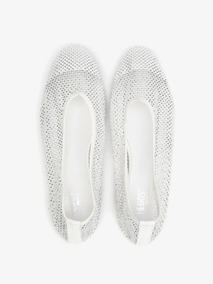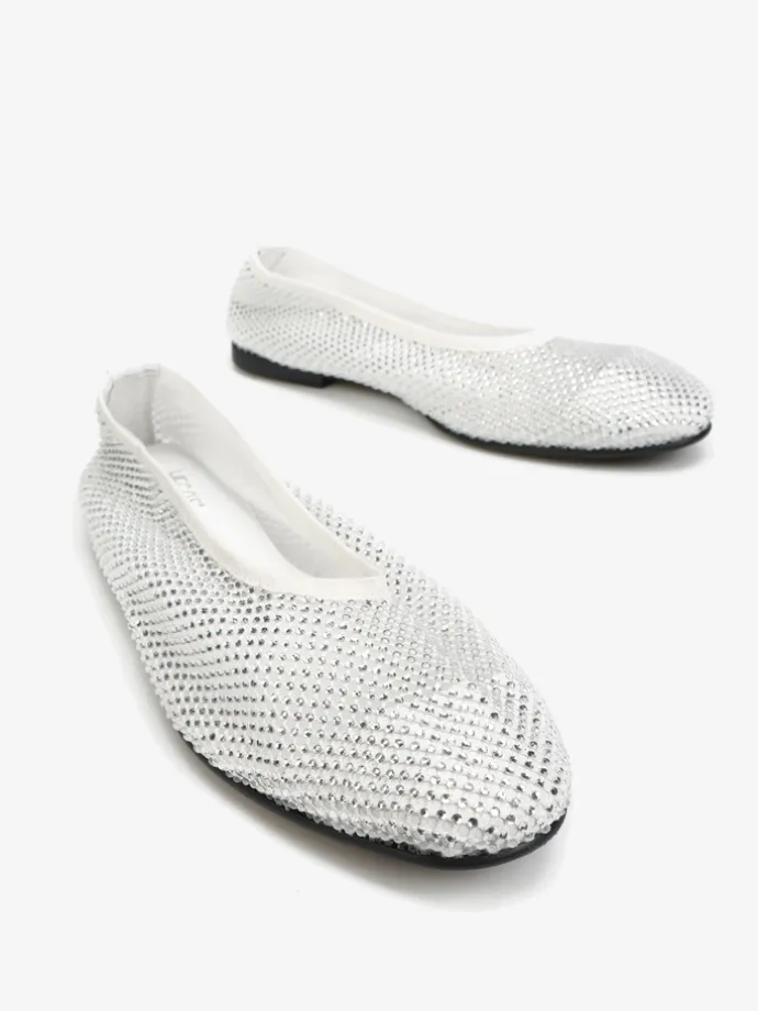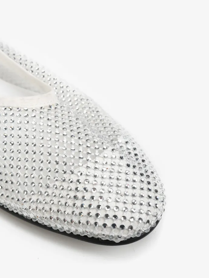 Baleriny wykonane z przewiewnej siateczki z połyskującymi kamieniami.