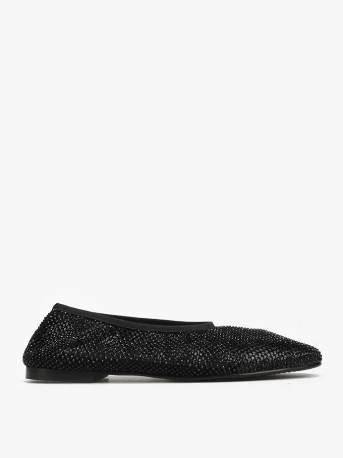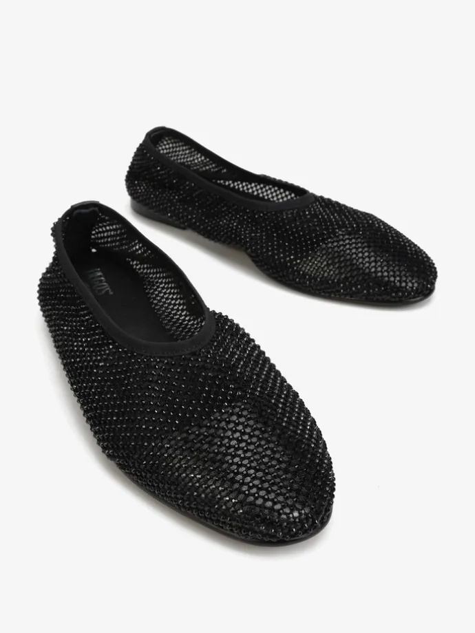 Baleriny wykonane z przewiewnej siateczki z połyskującymi kamieniami.