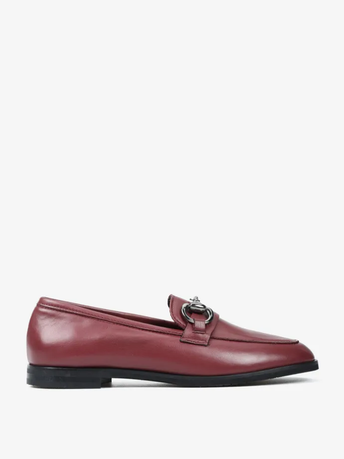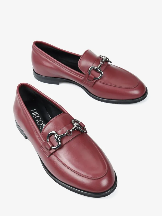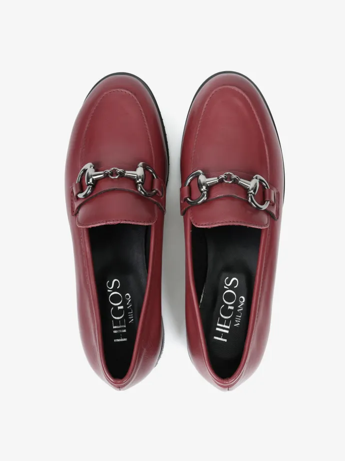 Mokasyny na płaskim obcasie wykonane są z włoskiej skóry naturalnej. Bordowa cholewka ozdobiona została wędzidłem. Wykonane z miękkiej i delikatnej skóry.