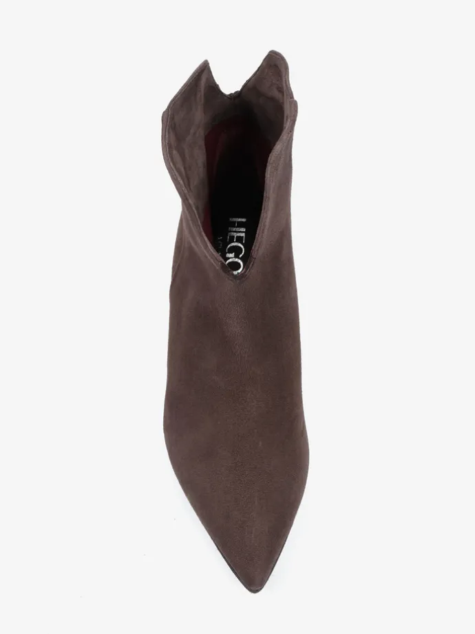 Limitowany model w klasycznym, brązowym kolorze, w całości wykonany jest z włoskiego zamszu. Eleganckie i modne wycięcie cholewki odpowiada za komfort i wygodę w chodzeniu. Mocno zarysowany nosek w szpic oraz charakterystyczny dla kowbojek ścięty obcas sprawiają, że klasyczny model nabiera nowoczesnego designu.