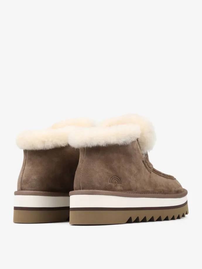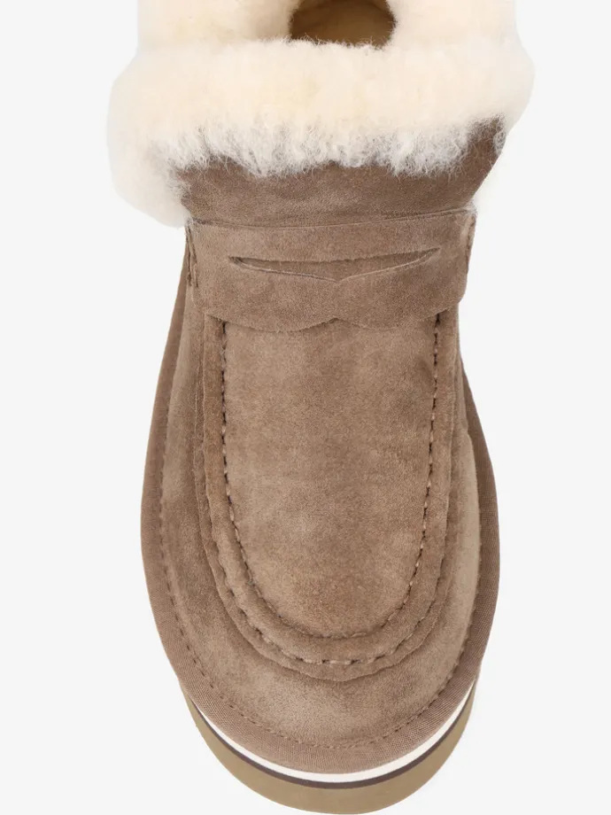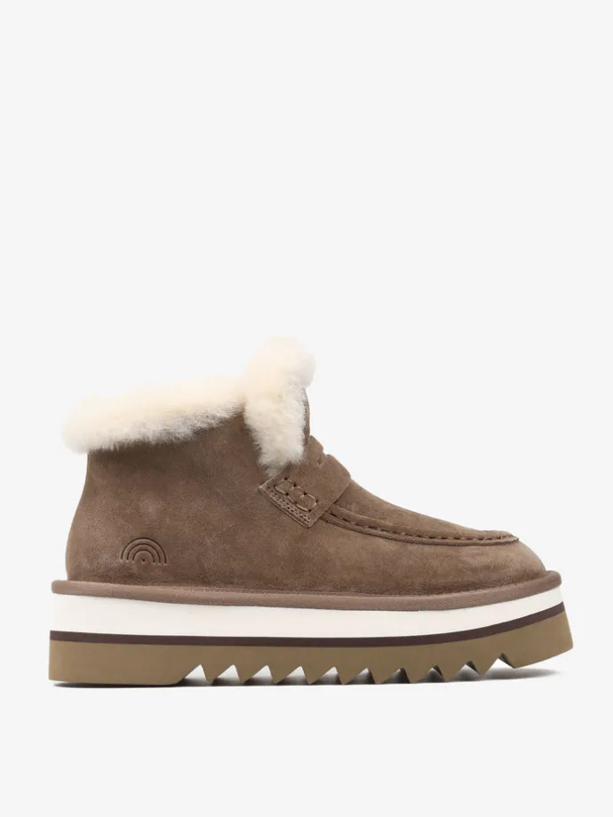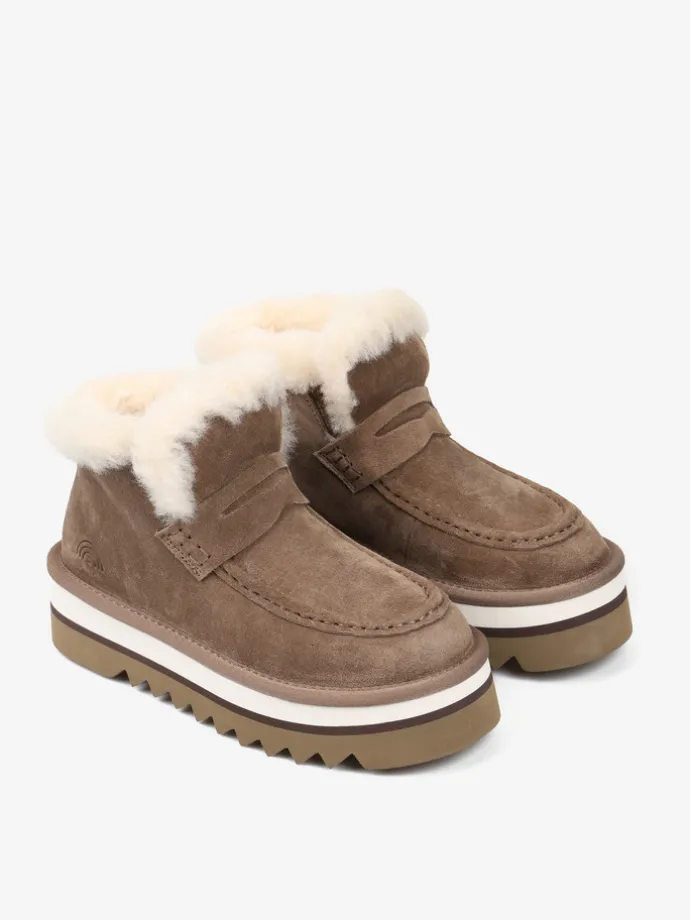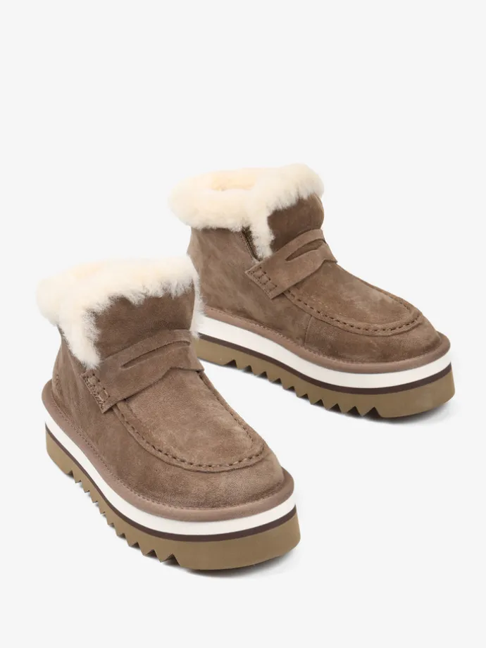 Zamszowe botki na platformie z wyściółką wykonaną z miękkiego, sztucznego futra.