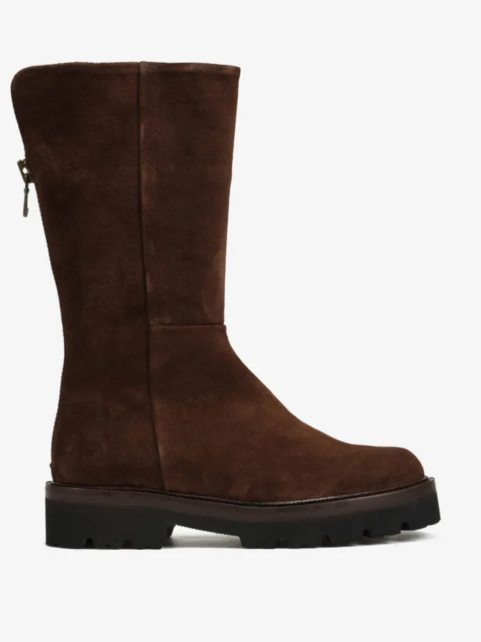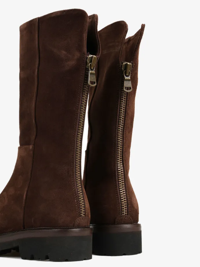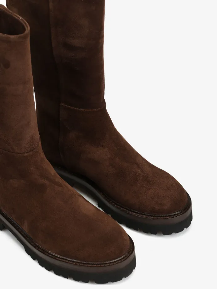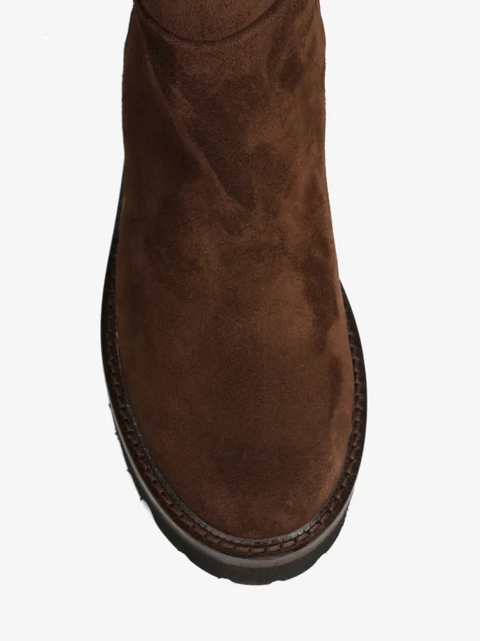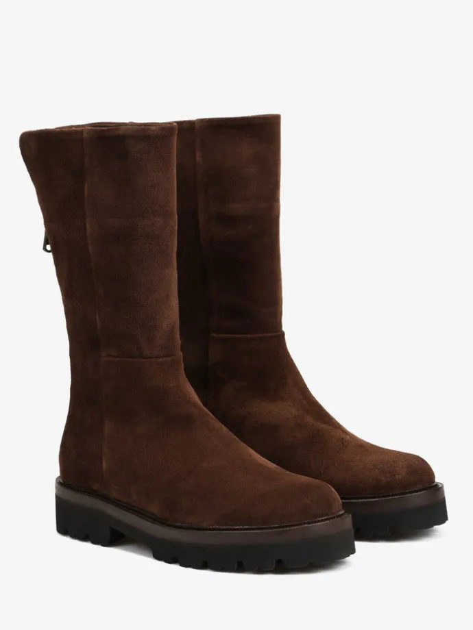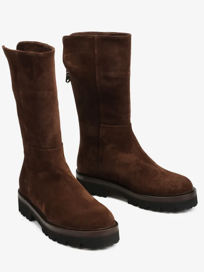 Zamszowe kozaki na platformie. Zapięcie na suwak.