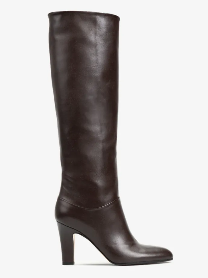 Czarne kozaki na słupku wykonane z miękkiej i delikatnej skóry. Zapięcie na suwak w dolnej części cholewki.