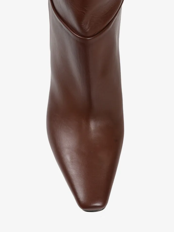 Wsuwane kozaki z szeroką cholewką. Wydłużone noski i profilowane szpilki.