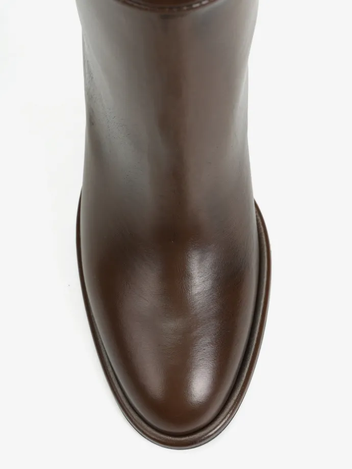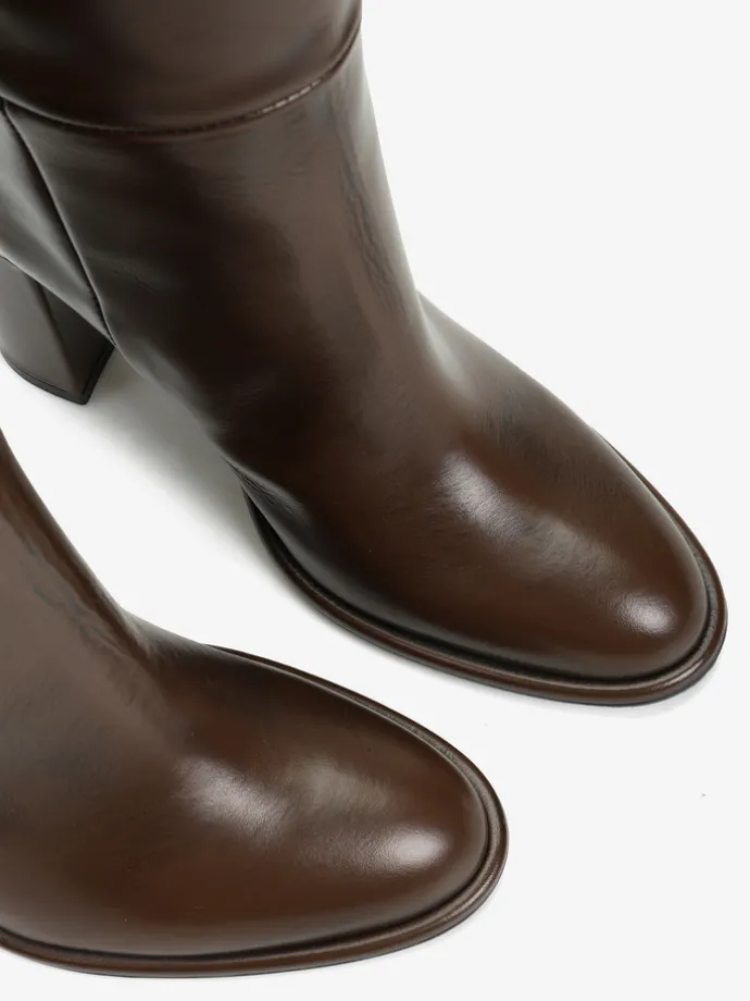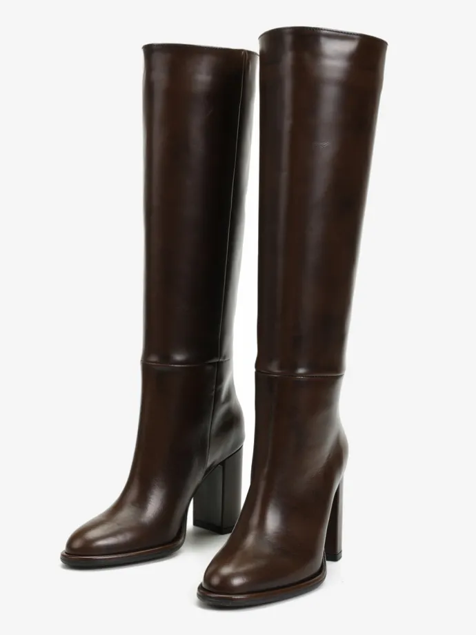 Proste, wsuwane kozaki na słupku z okrągłymi noskami.
