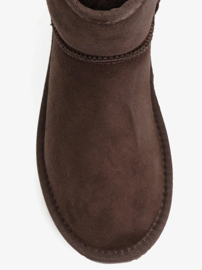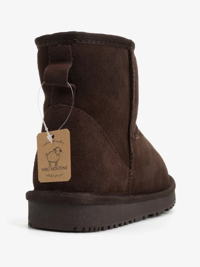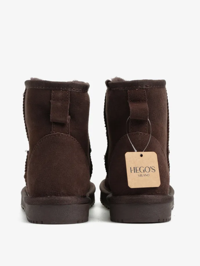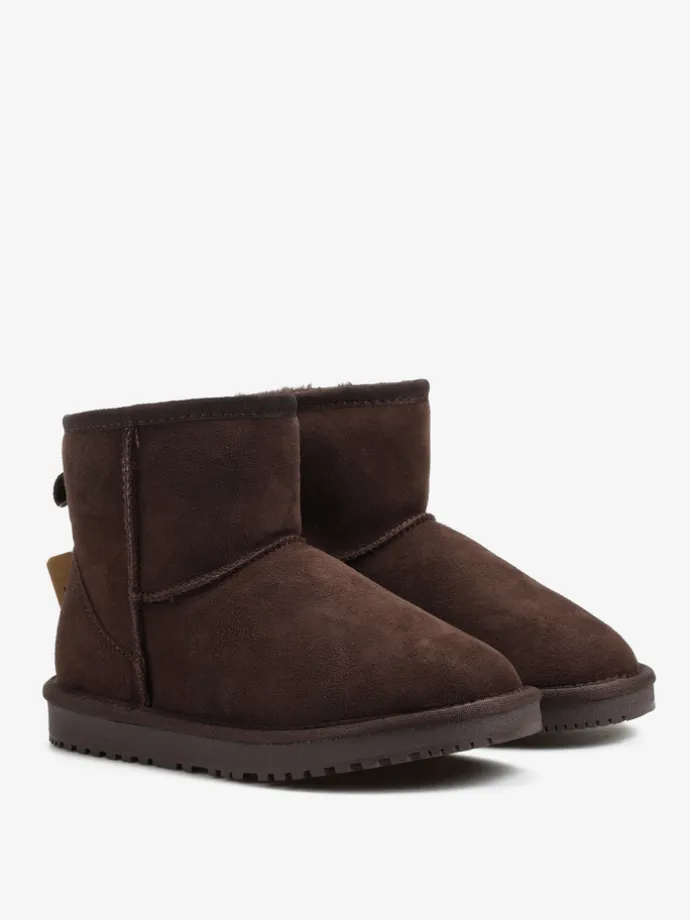 Śniegowce na niskiej platformie, wykonane z 100% naturalnej skóry owczej. Zewnętrzna warstwa to miękka, zamszowa skóra, natomiast wnętrze to ciepły, naturalny kożuch.