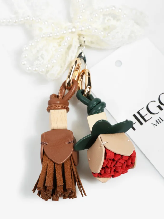 Stylowe przywieszki w formie breloka wykonane ze skóry i tkaniny.To idealny dodatek dla osób ceniących sobie detale i oryginalne akcenty w codziennych stylizacjach.Sprawdzi się jako ozdoba do butów, kluczy, zamka w torebce, plecaka czy nawet telefonu. Niewielki detal, który wyróżni Cię z tłumu!