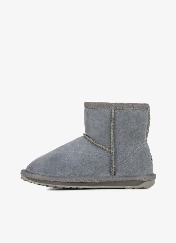 EMU Australia Wallaby Mini Teens to model wykonany najwyżej jakości skóry zamszowej. Wnętrze jest podszyte wełną z australijskich owiec merynosów o oddychających właściwościach. Warto zaimpregnować buty przed pierwszym spacerem preparatem do naturalnego zamszu i nubuku, dzięki temu będą odporne na zachlapania i wilgoć.Materiały użyte w modelu Wallaby Mini utrzymują stopy w cieple nawet przy temperaturze -30°C oraz chłodzą je w te cieplejsze. Ważną zaletą wełny jest to, że nie przegrzewa stóp, dając poczucie komfortu w każdej temperaturze. Skóra na pięcie jest specjalnie wyprofilowana dla lepszego wsparcia, dopasowania i utrwalenia fasonu.