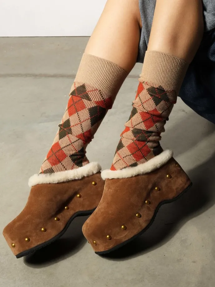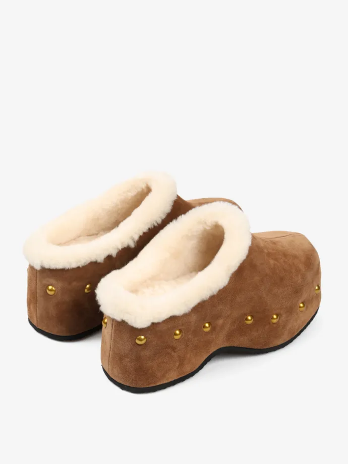 Chodaki na platformie z ozdobnymi ćwiekami. Wyściółka z naturalnej wełny owczej.