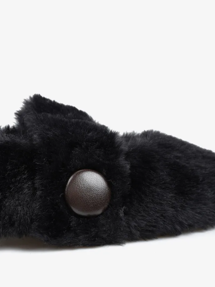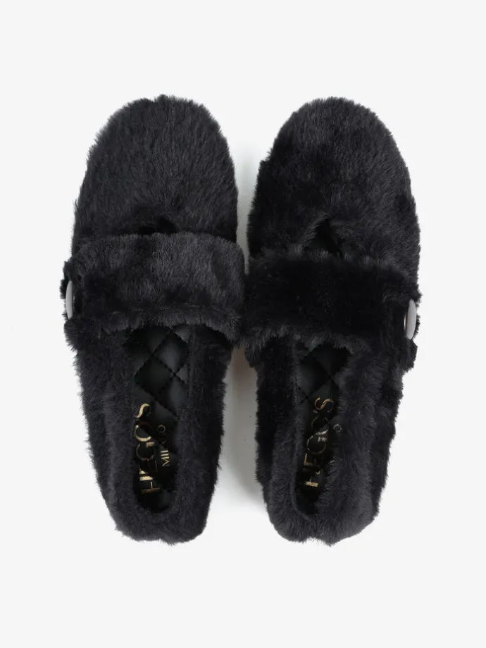 Czarne baleriny wykonane z miękkiego, sztucznego futra. Zapinanie na rzep.