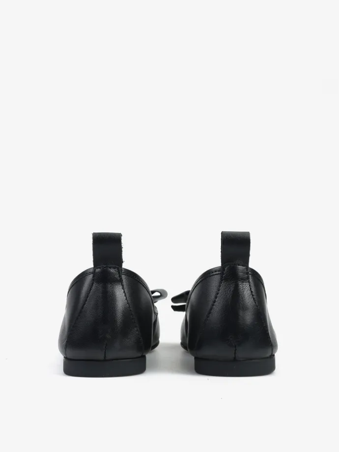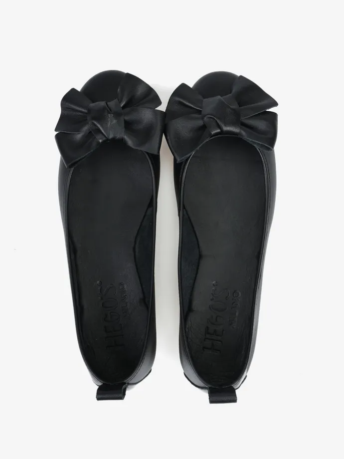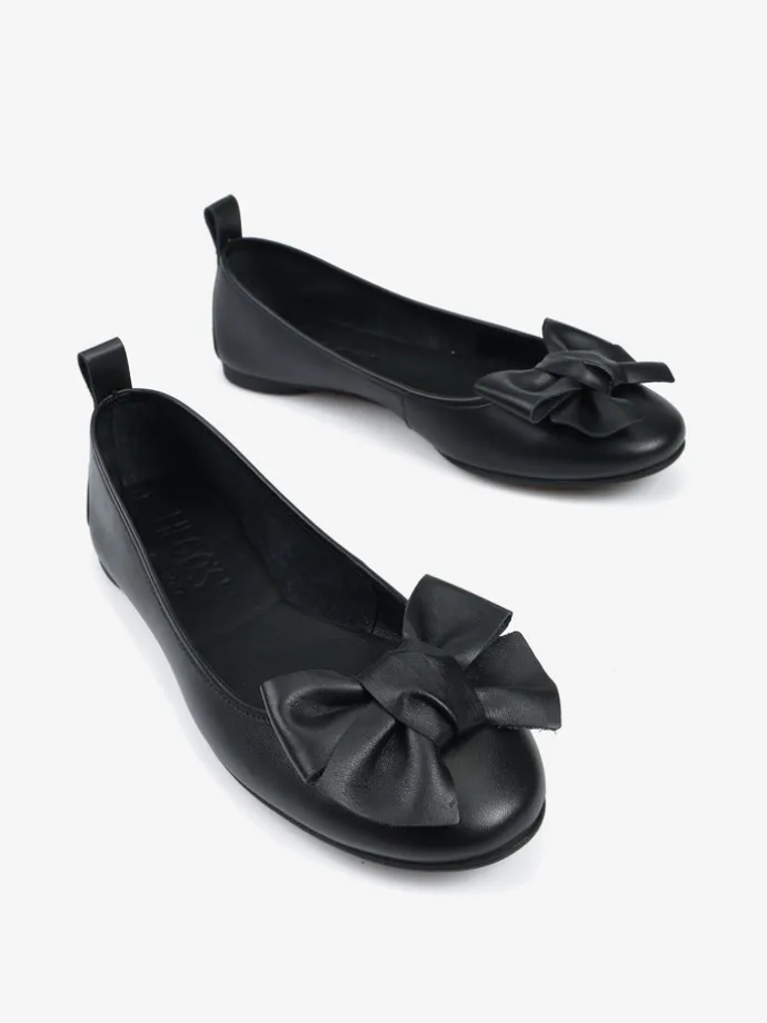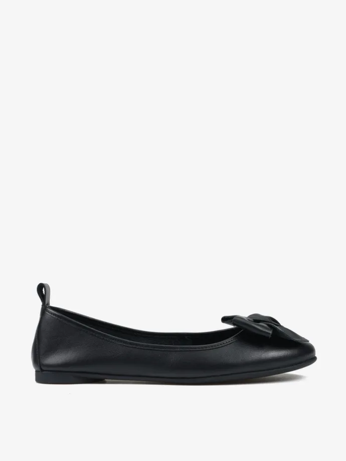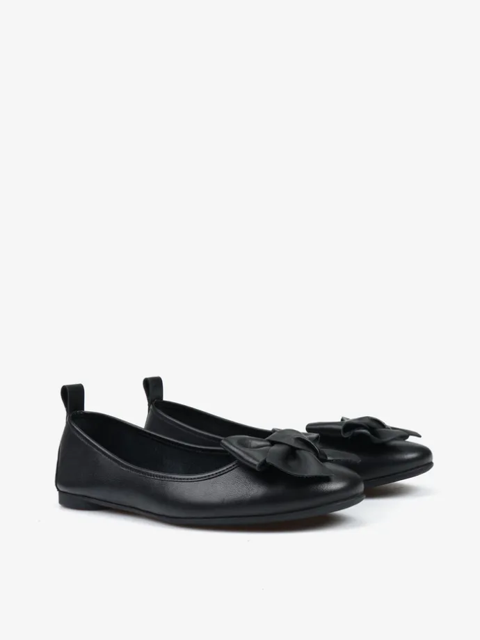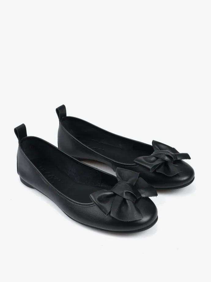 Baleriny wykonane z delikatnej, miękkiej skóry. Okrągły nosek ze skórzaną kokarda.