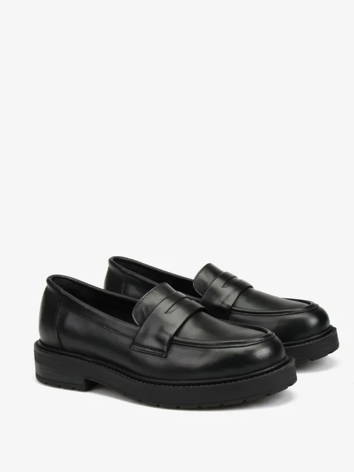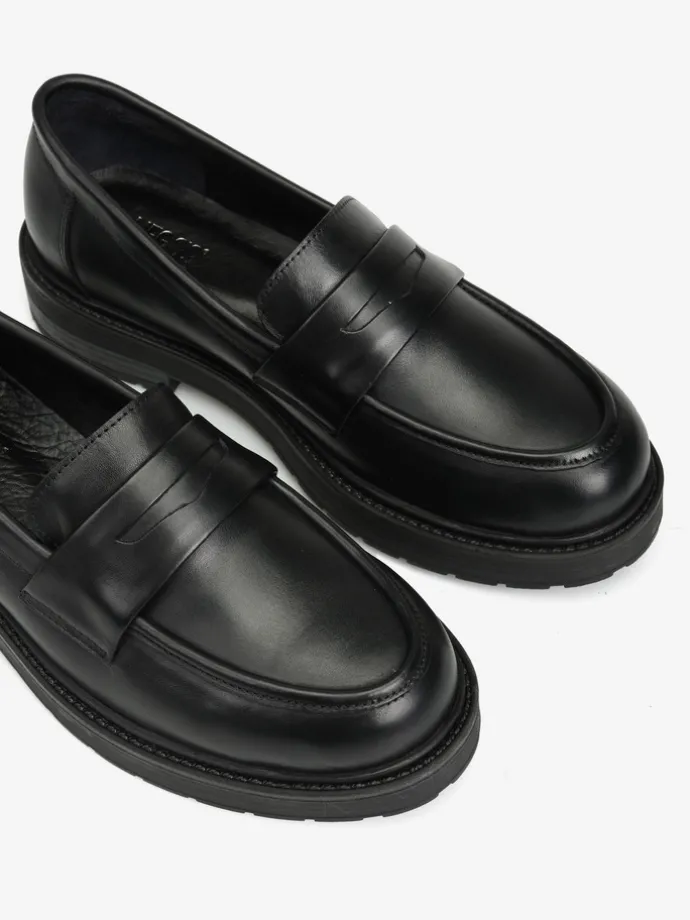 Klasyczne mokasyny z ozdobną patką, na grubszej podeszwie.