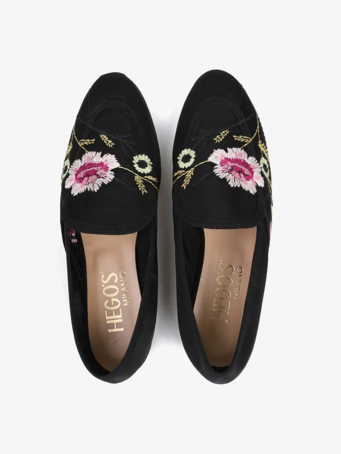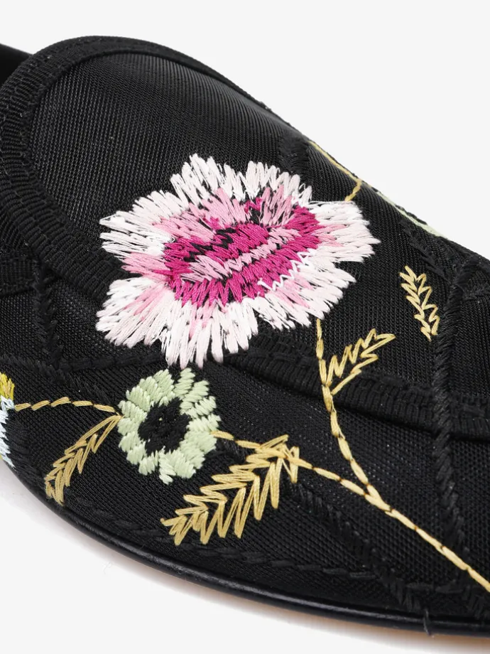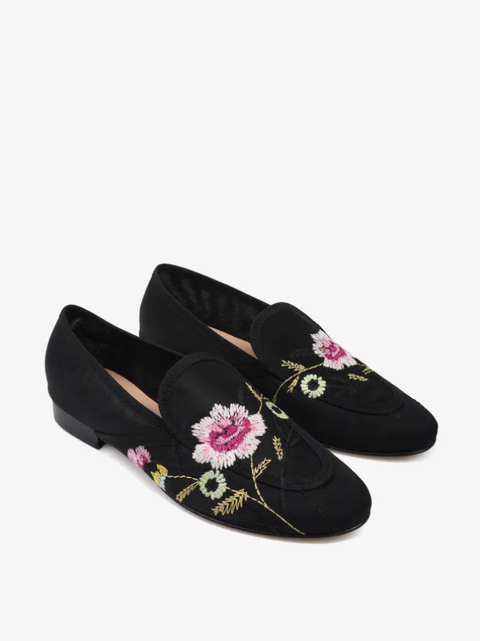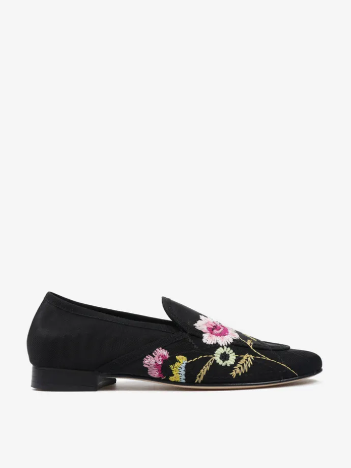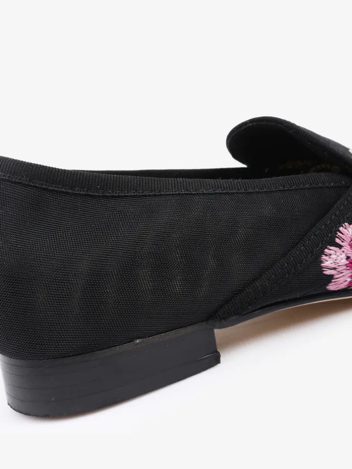 Mokasyny z przewiewnej siateczki z ozdobnym haftem w kwiaty.
