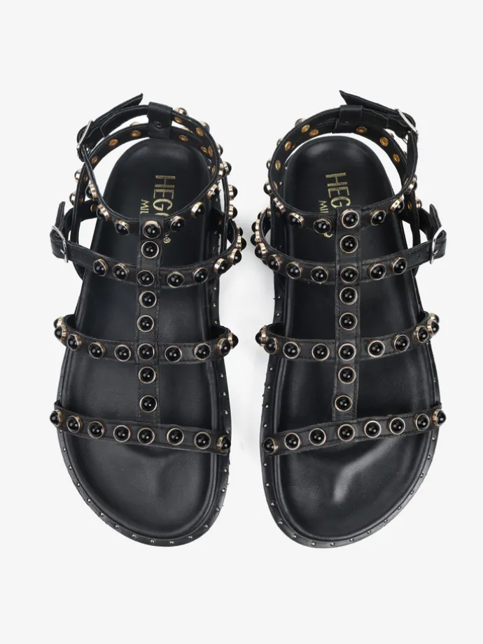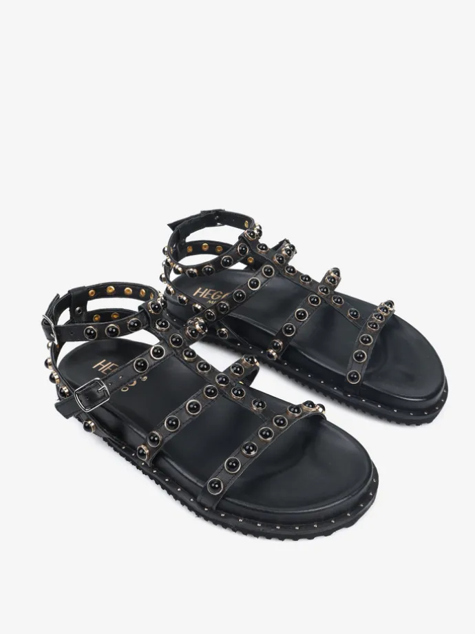 Sandały z ćwiekami wykonane z miękkiej, delikatnej skóry. Regulowane zapięcia przy kostce.