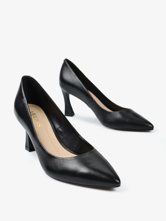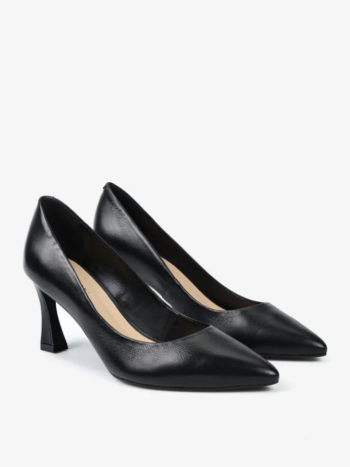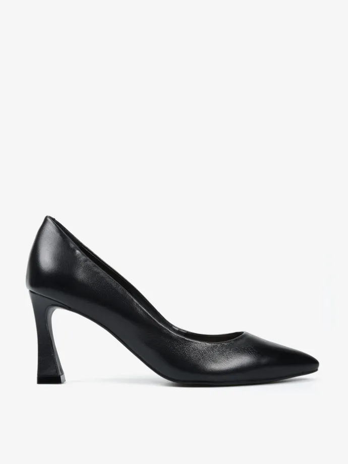 Klasyczne, czarne szpilki z noskiem w szpic wykonane z miękkiej i delikatnej skóry.