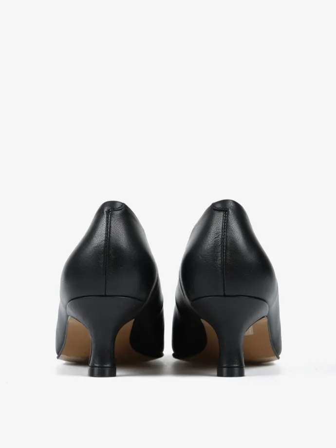 Proste szpilki z noskiem w szpic, wykonane z miękkiej i delikatnej skóry. Owalne wycięcie z zabudowanymi brzegami.