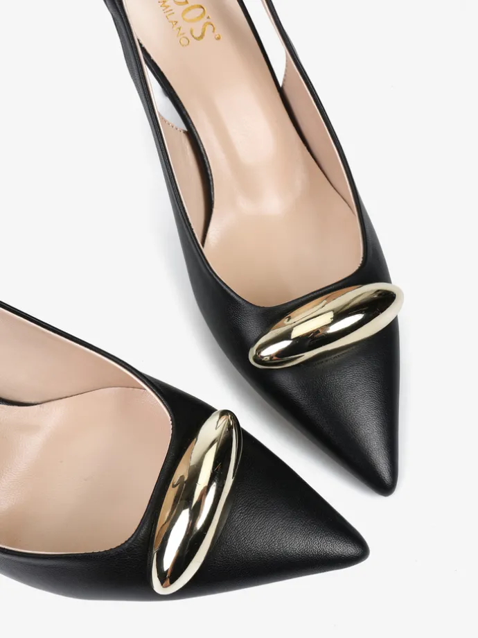 CZARNE SZPILKI Z METALOWĄ OZDOBĄ HEGO’S Milano