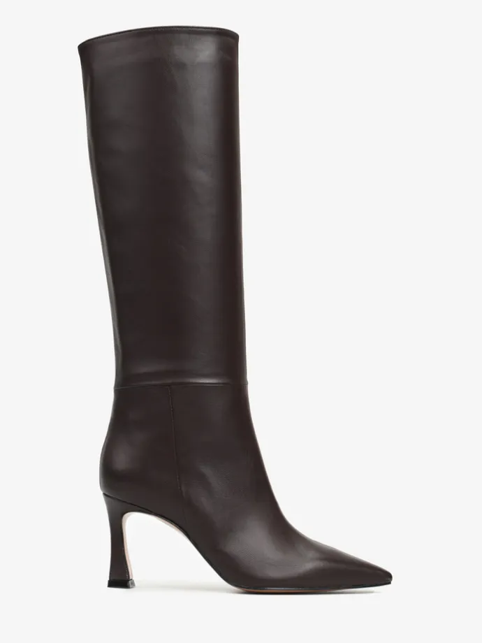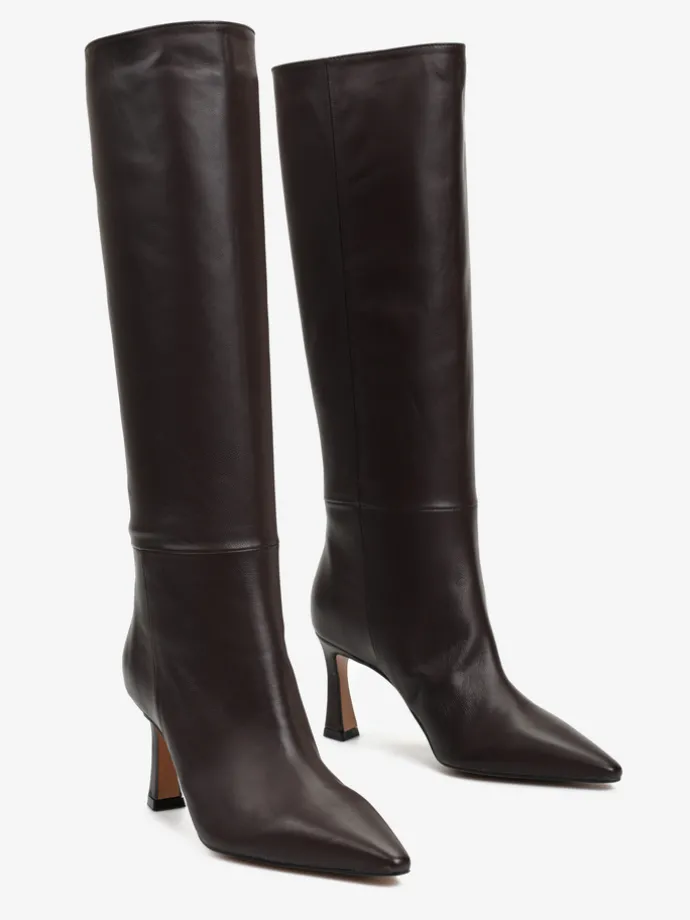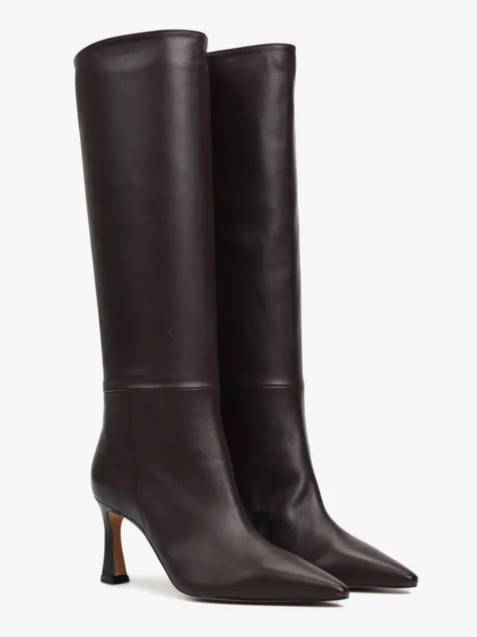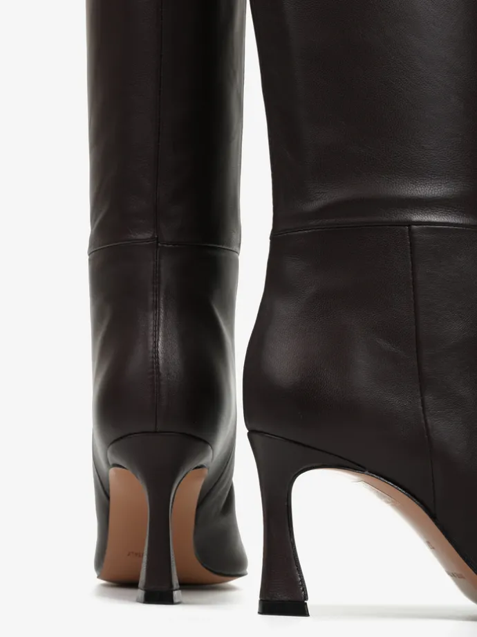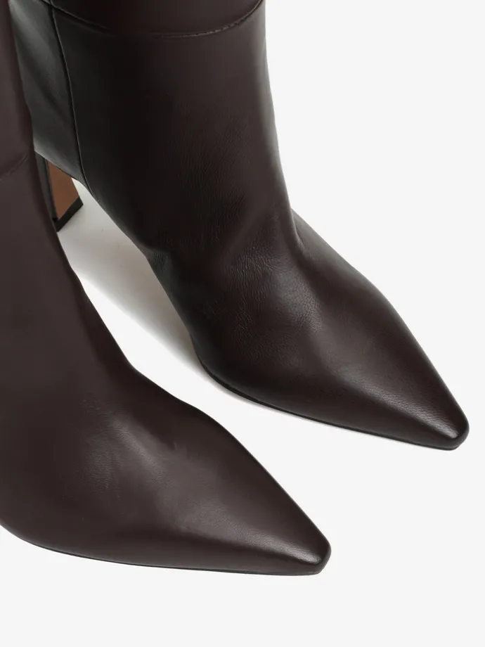 Wsuwane kozaki na szpilce, wykonane z miękkiej i delikatnej skóry. Noski w szpic.