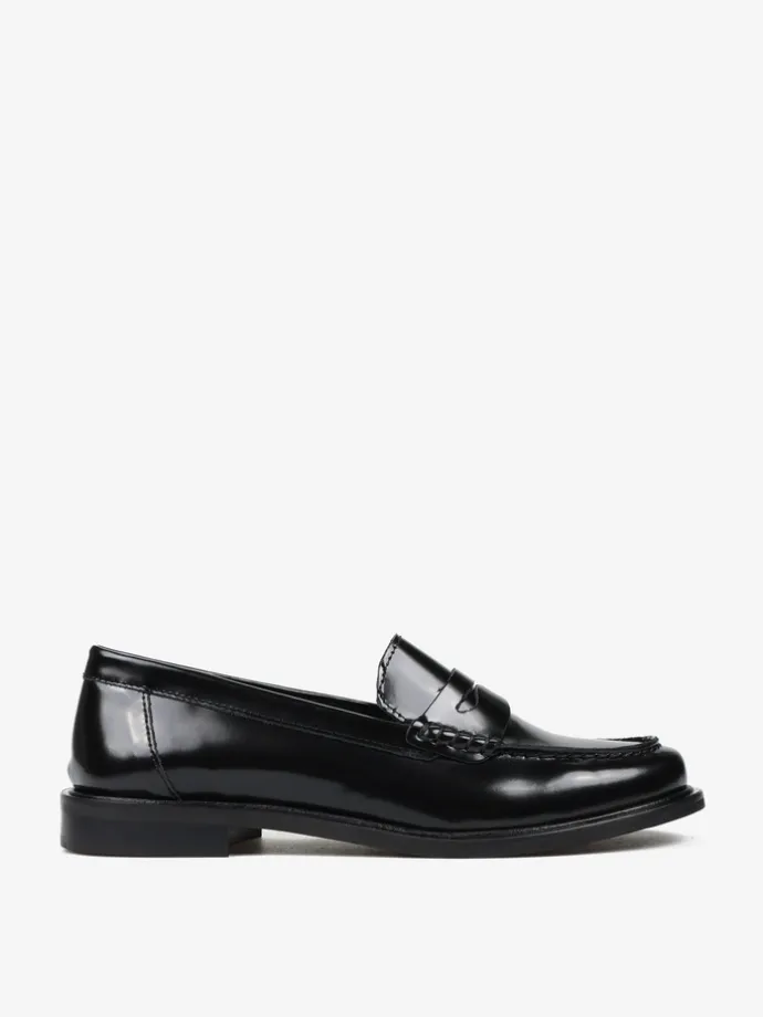 Mokasyny na płaskim obcasie to must have kobiecej garderoby. Wykonane są z wysoko polerowanej skóry naturalnej. Lekkie i wygodne dopasują się do Twojej stopy. Model posiada staranne przeszycia cholewki oraz wysoki język charakterystyczny dla tego fasonu. Klasyka jest ponadczasowa.