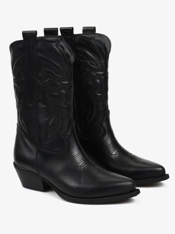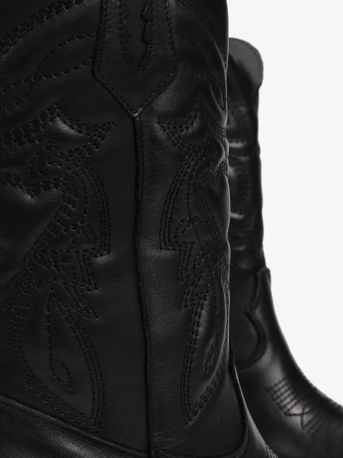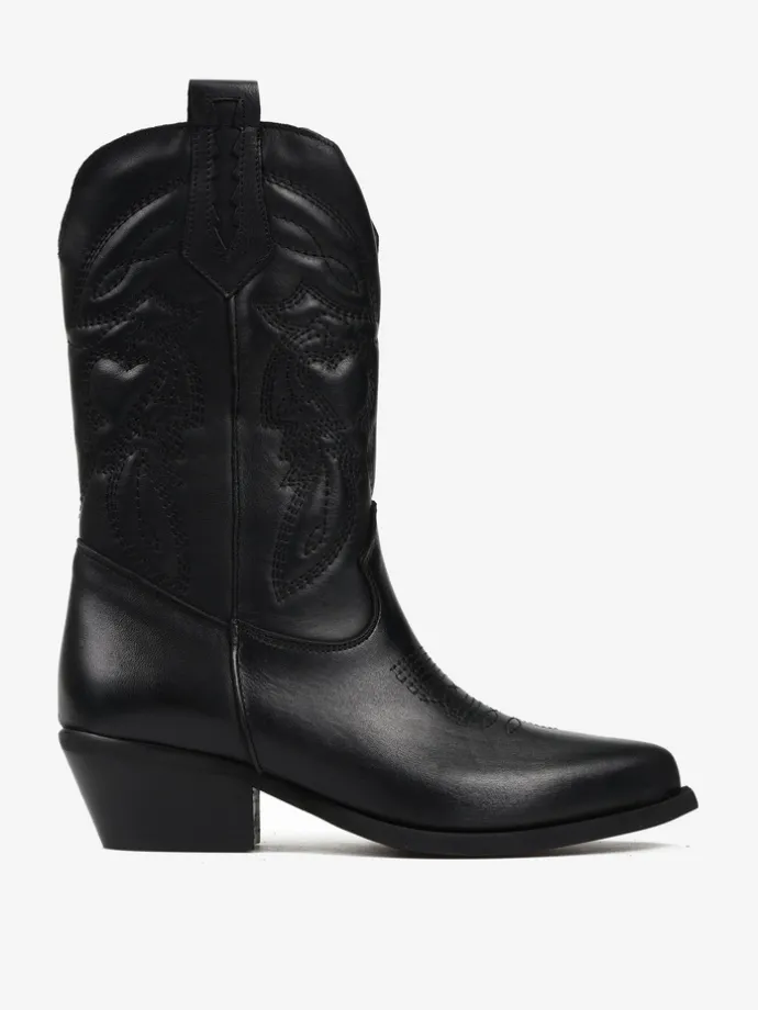 Klasyczne kowbojki z noskami w szpic i monochromatycznym haftem.
