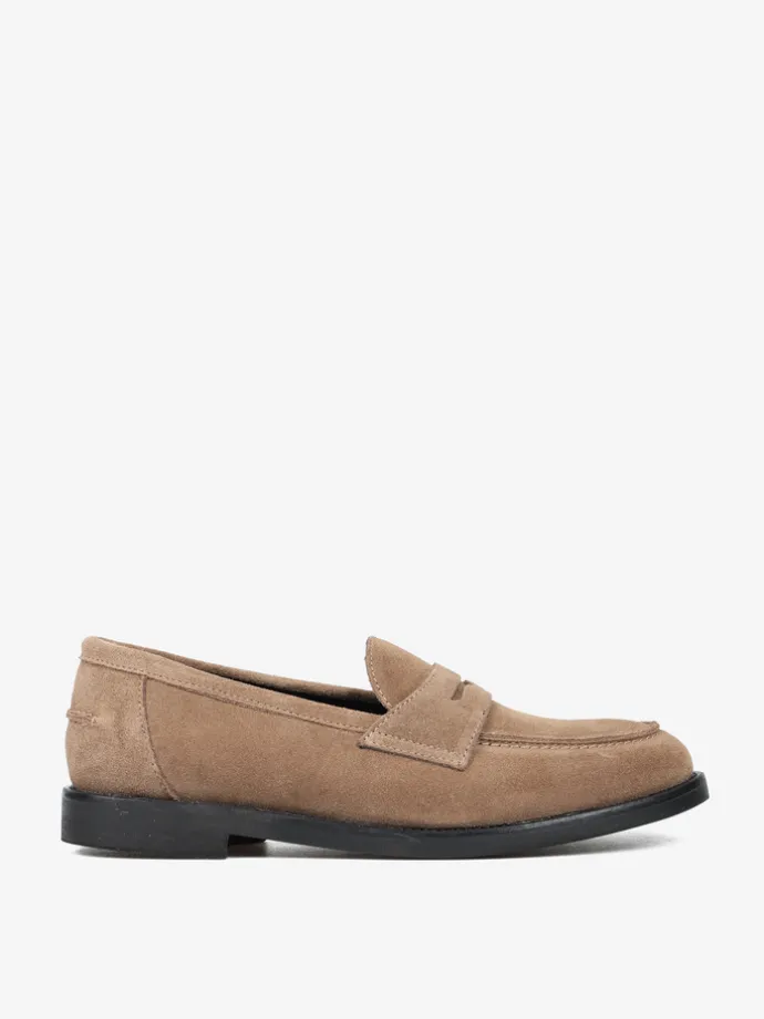Klasyczne, zamszowe, bardzo lekkie mokasyny z ozdobną patką.