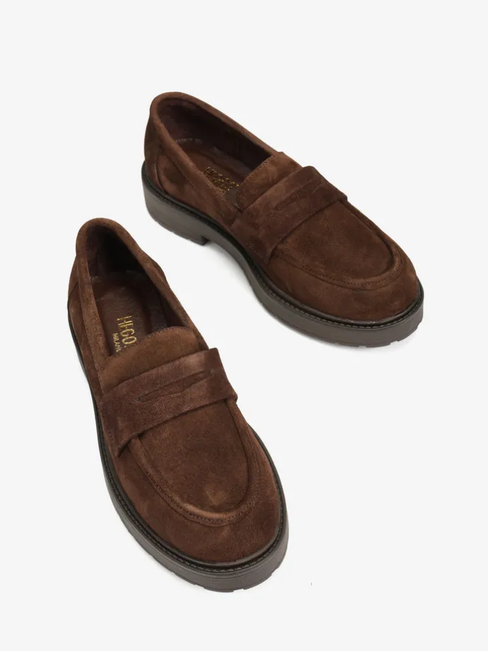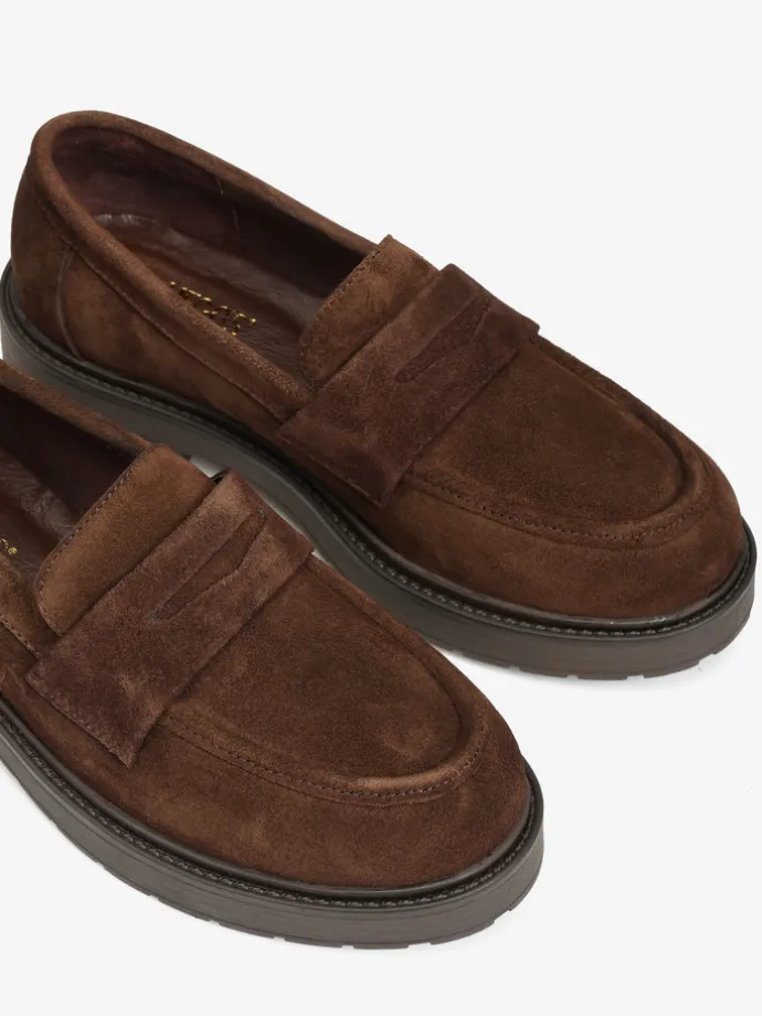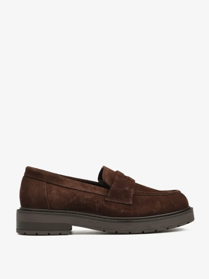 Klasyczne mokasyny z ozdobną patką, na grubszej podeszwie.