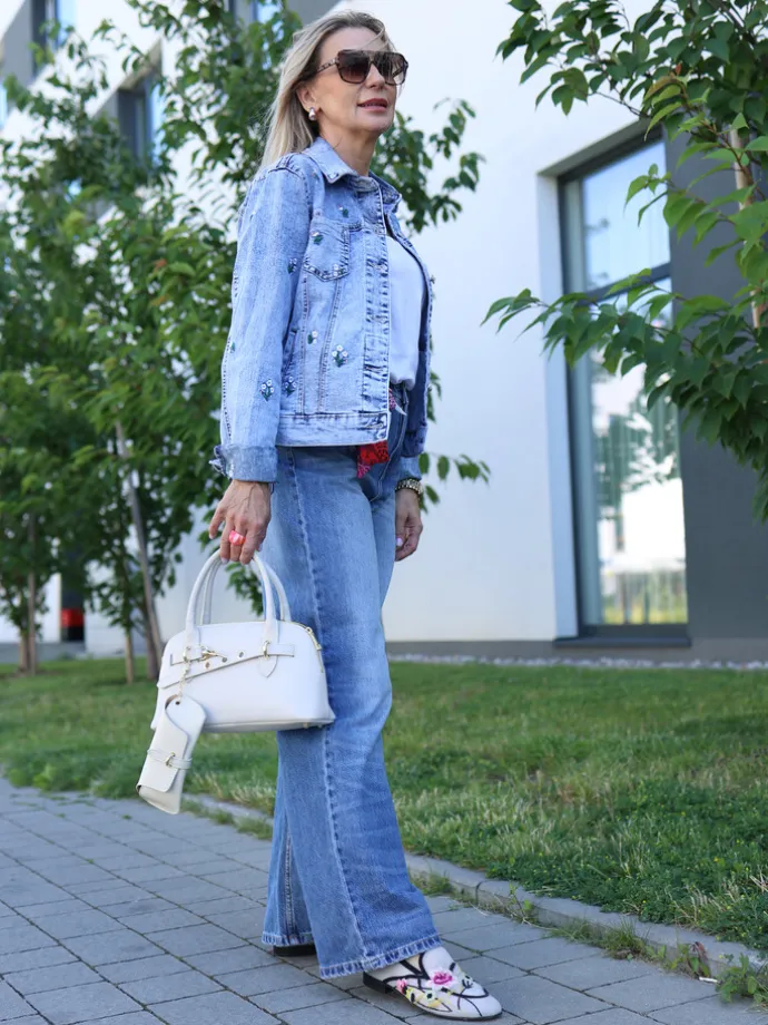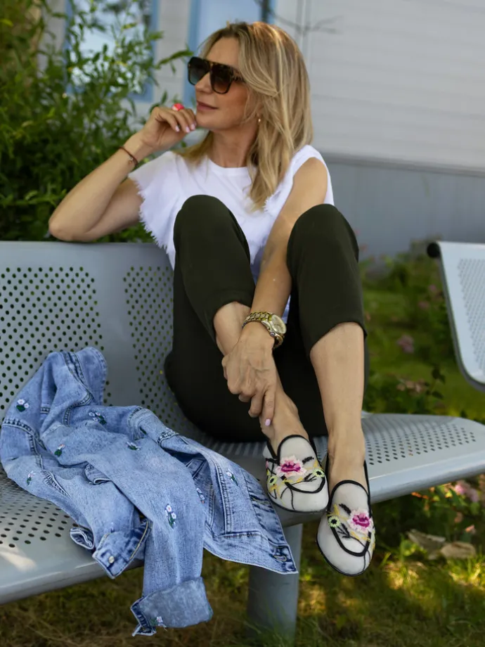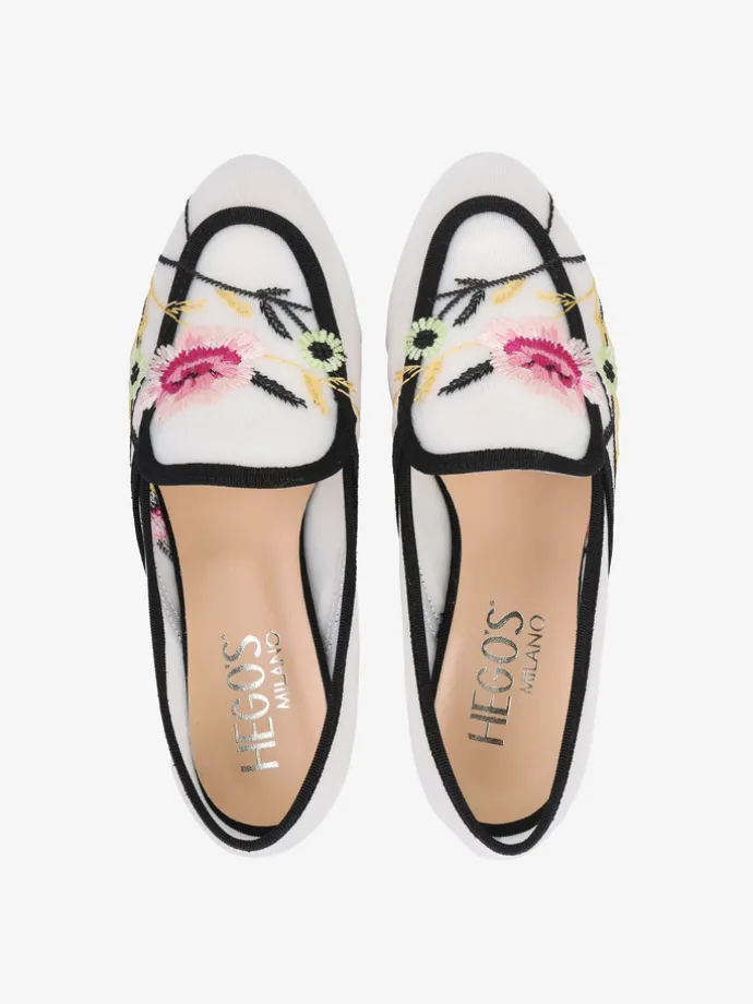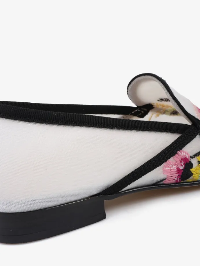Mokasyny z przewiewnej siateczki z ozdobnym haftem w kwiaty.