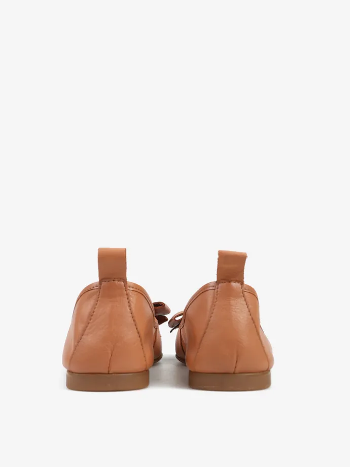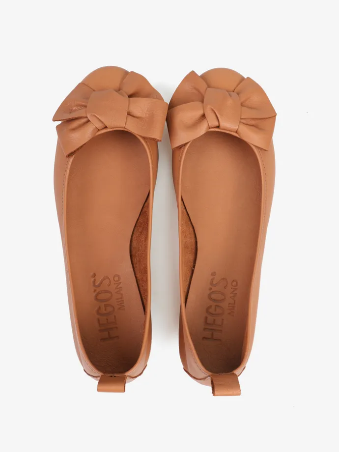 Baleriny wykonane z delikatnej, miękkiej skóry. Okrągły nosek ze skórzaną kokarda.