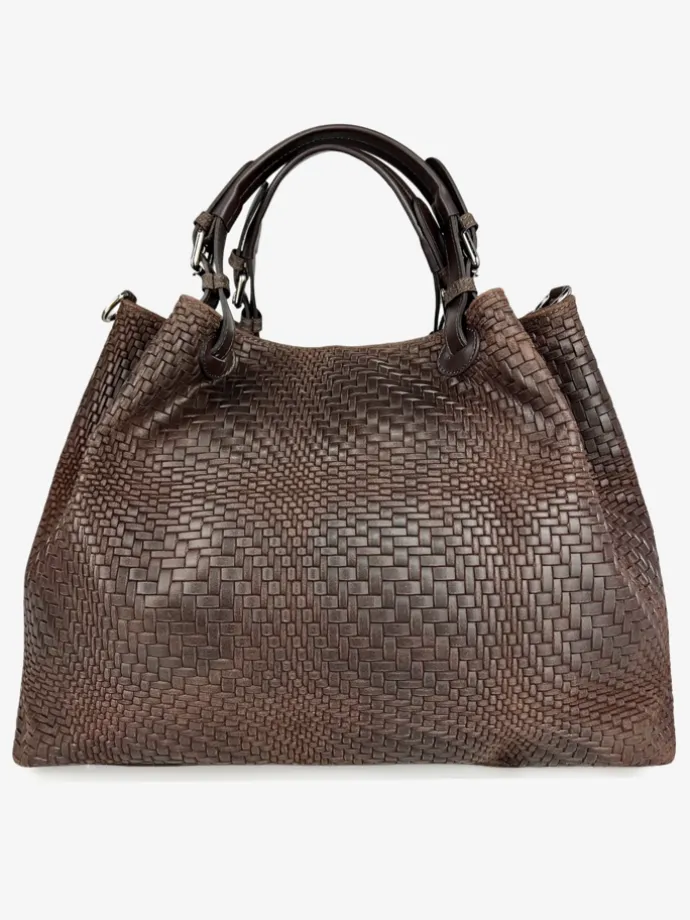 Torebka HEGO’S Milano to duża torebka o eleganckim, plecionym wykończeniu. Wykonana z wysokiej jakości skóry, łączy funkcjonalność z unikalnym stylem. Regulowany pasek zapewnia komfort noszenia, a przestronna komora pomieści wszystkie niezbędne rzeczy. To doskonały wybór do codziennych stylizacji, dodający im subtelnej elegancji.
