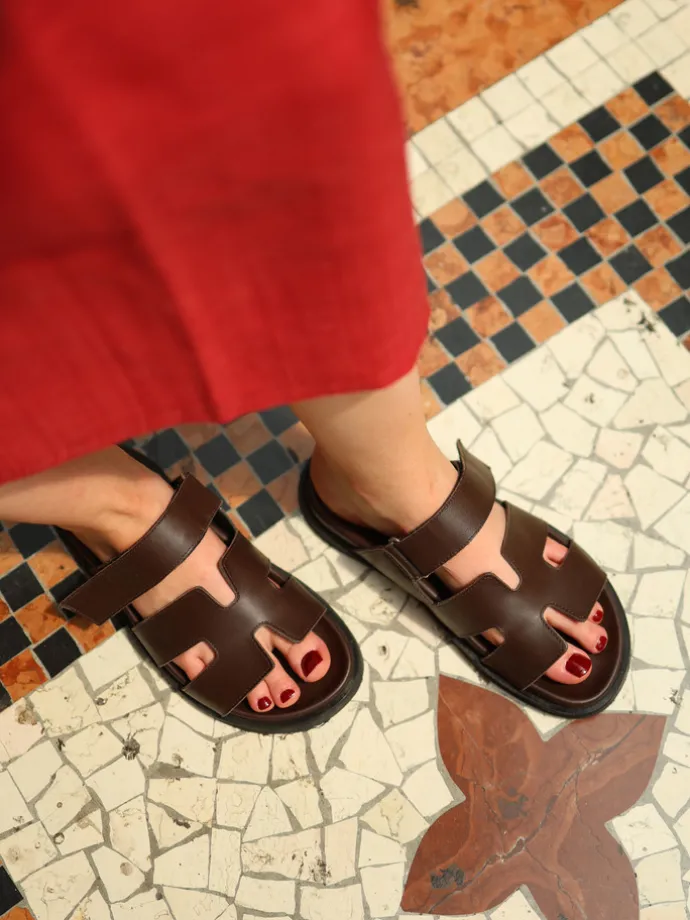 Modne klapki wykonane z mięsistej skóry. Zapięcie na rzep pozwala na idealne dopasowanie.