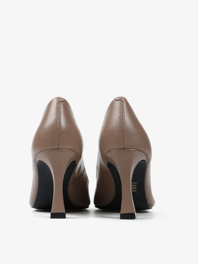 Klasyczne, beżowe szpilki z noskiem w szpic wykonane z miękkiej i delikatnej skóry.