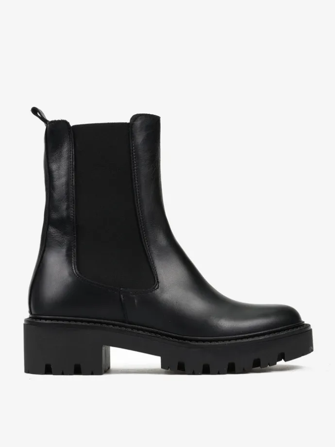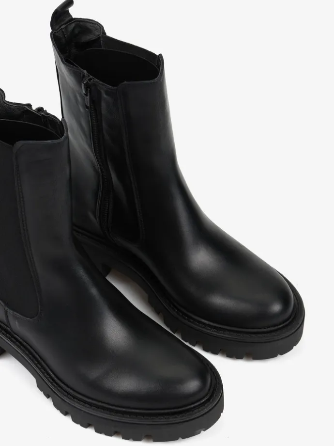 Klasyczne, skórzane sztyblety na podwyższonej podeszwie.
