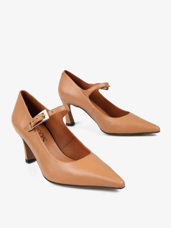 Eleganckie szpilki z noskiem w szpic i regulowanym paskiem. Wykonane z miękkiej z delikatnej skóry.