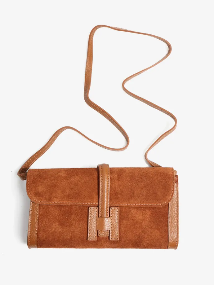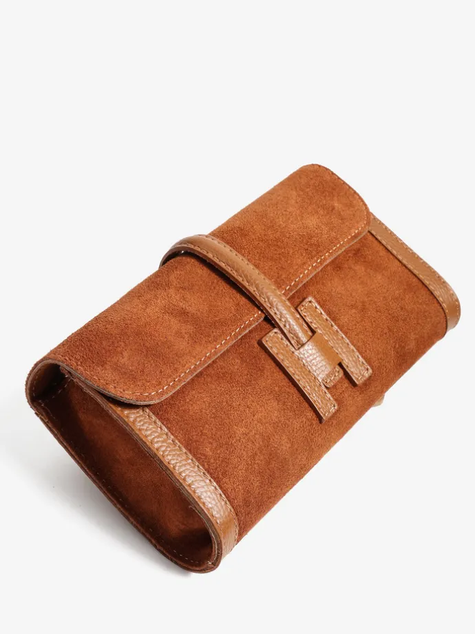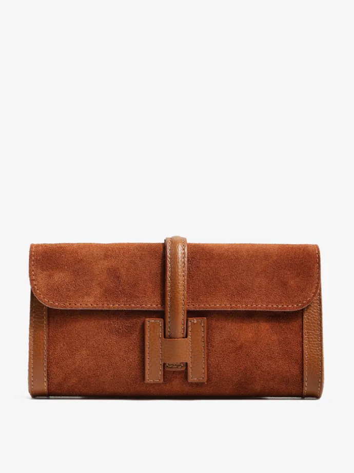 Kopertówka z ozdobnym zapięciem w kształcie litery H – jak HEGO’S MILANO. Dodatkowy pasek do noszenia na ramieniu.