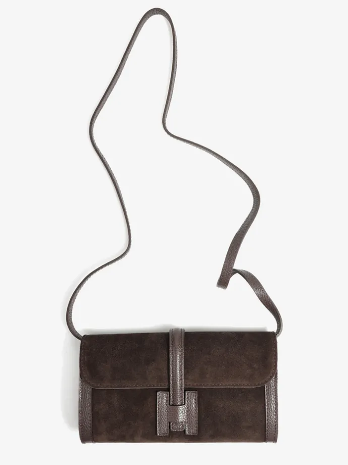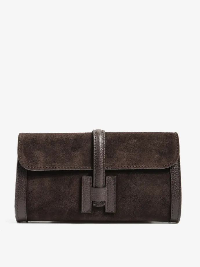 Kopertówka z ozdobnym zapięciem w kształcie litery H – jak HEGO’S MILANO. Dodatkowy pasek do noszenia na ramieniu.