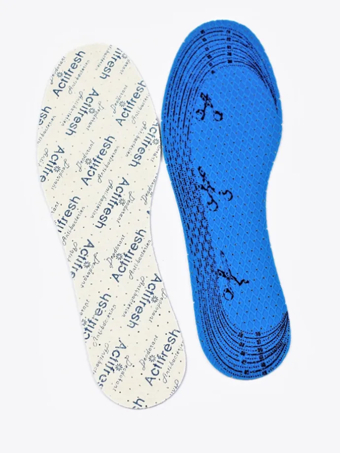 Wkładka antybakteryjna o świeżym zapachu składająca się z trzech warstw: bawełnianej tkaniny wierzchniej, pianki lateksowej ze środkiem przeciwbakteryjnym zapobiegającym rozwojowi drobnoustrojów w wilgotnym i ciepłym środowisku buta oraz przeciwpoślizgowej pianki lateksowej, z fakturą rombów. Perforacja zapewnia cyrkulację powietrza, która daje poczucie komfortu.