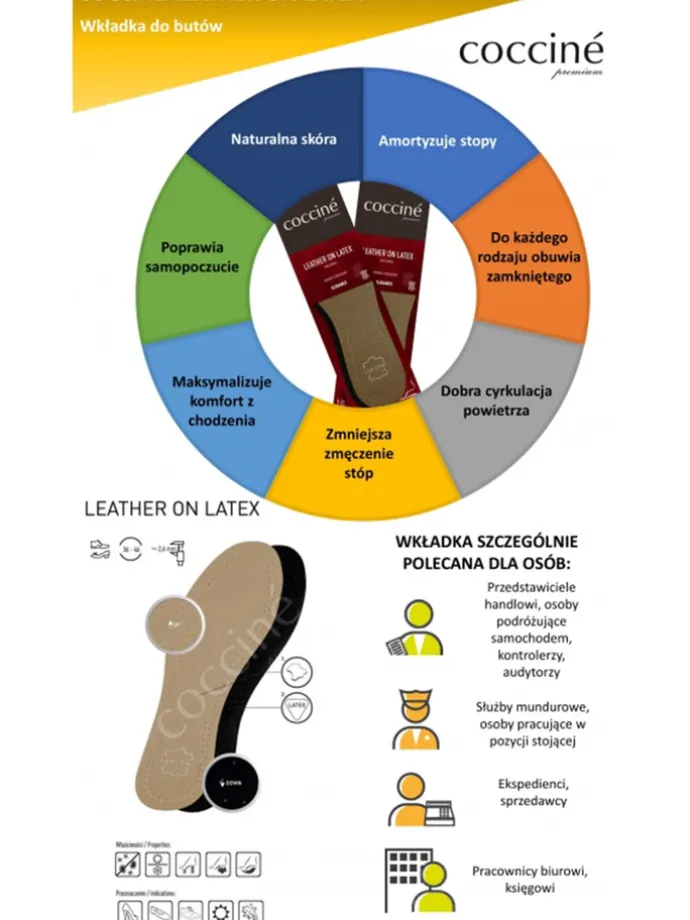 Wkładka skórzana na warstwie lateksu. Poprawia amortyzację i izolację. Chroni wyściółkę buta, poprawia komfort chodzenia.