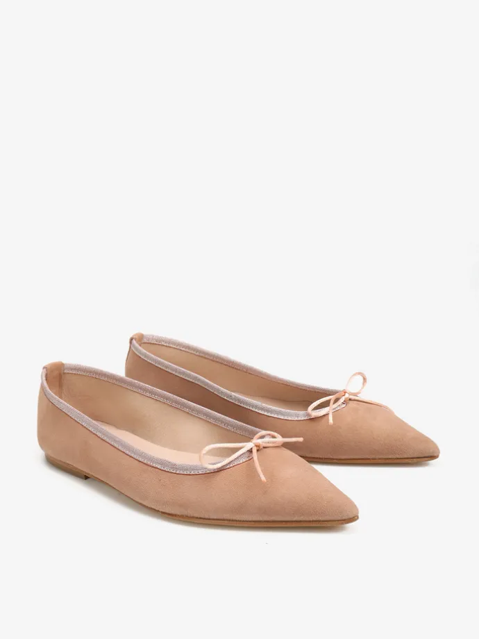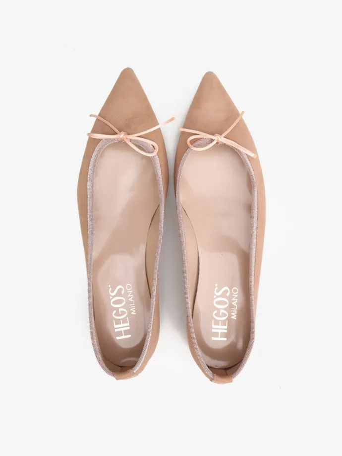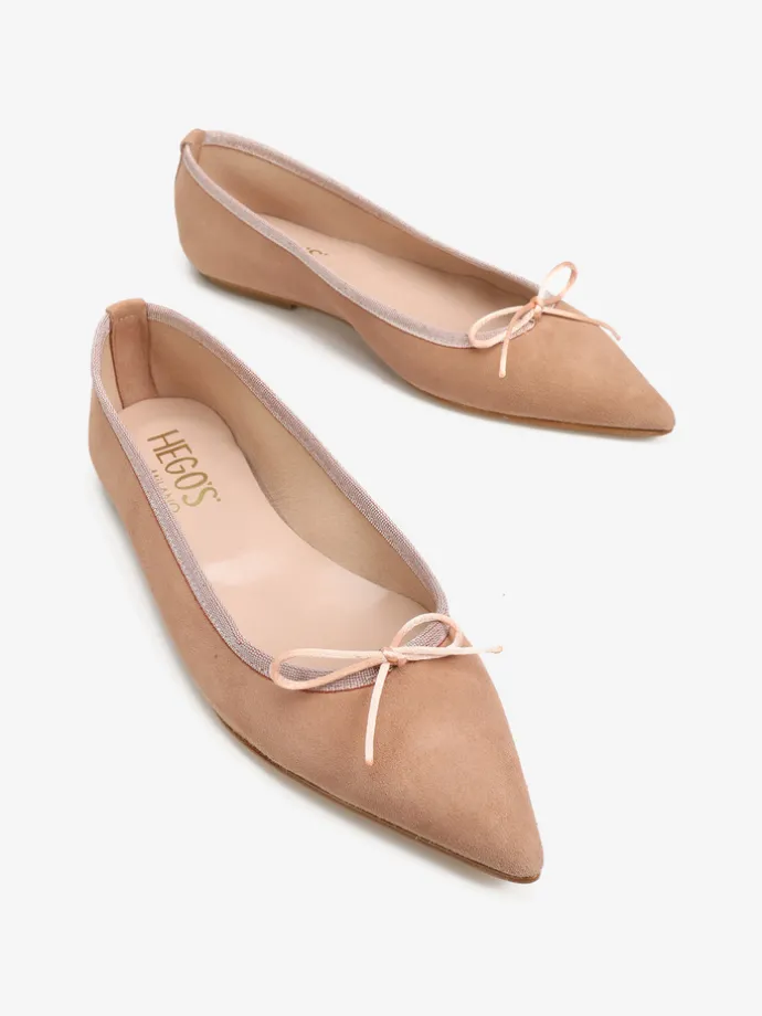 Baleriny wykonane ze skóry w wężowy wzór z noskiem w szpic.Wiązana kokardka umożliwia regulację dopasowania.