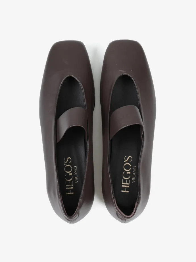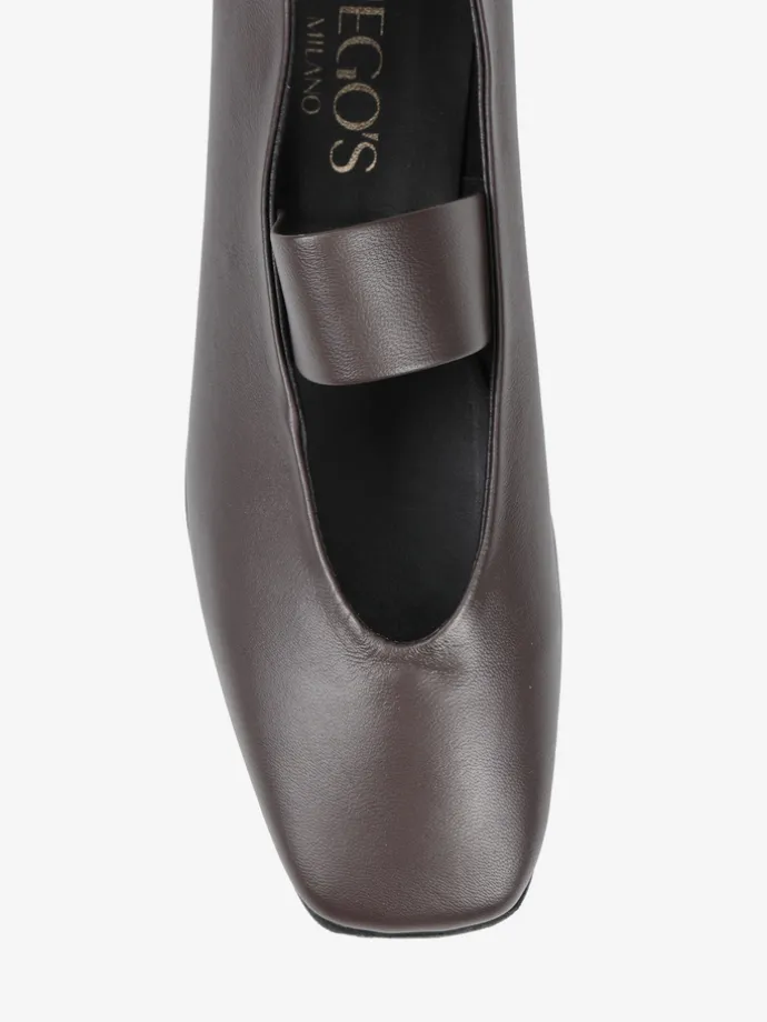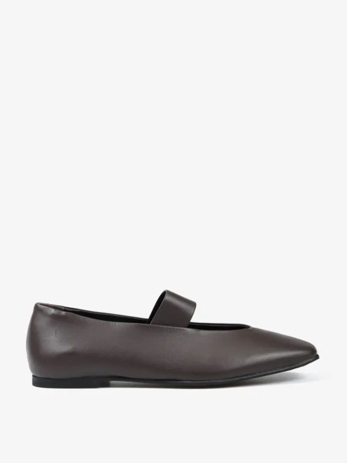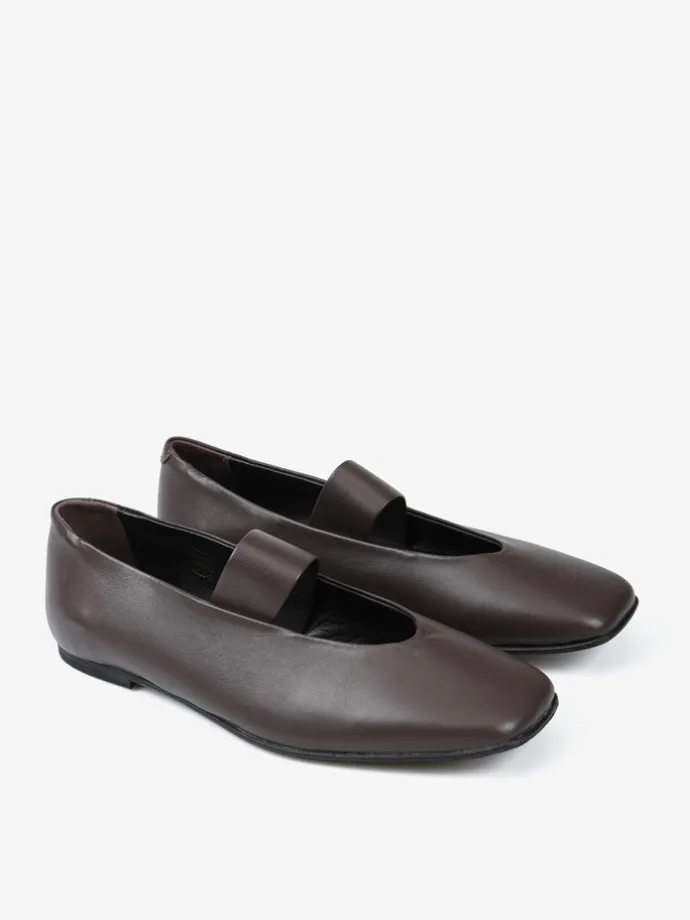 Brązowe baleriny Mary Jane wykonane z miękkiej i delikatnej skóry. Kwadratowe noski i pasek na podbiciu.