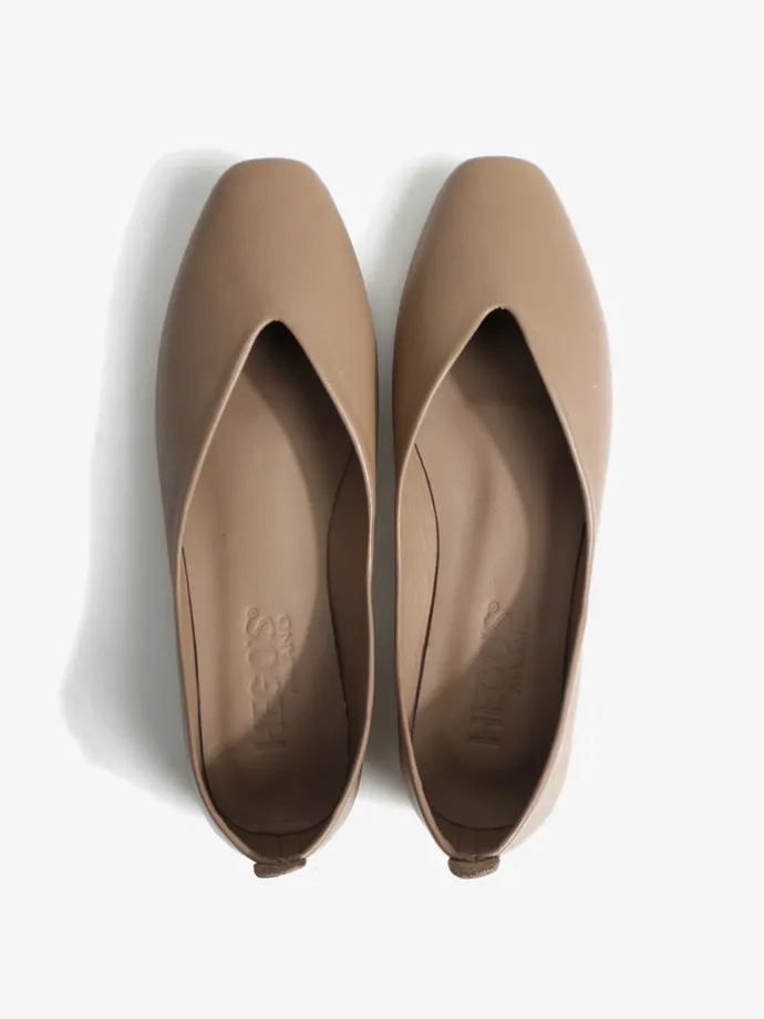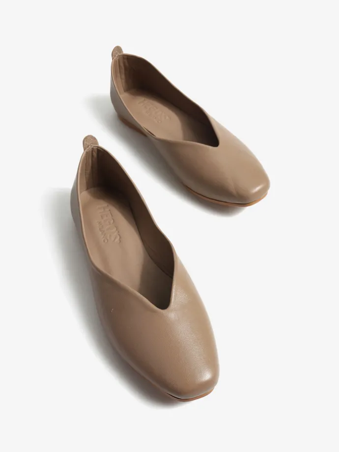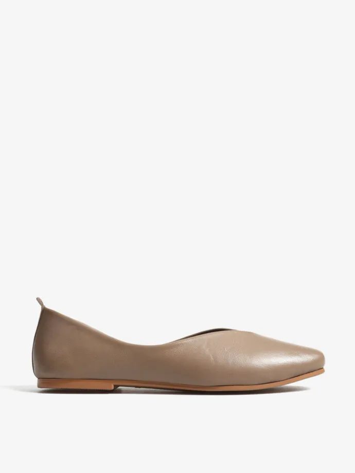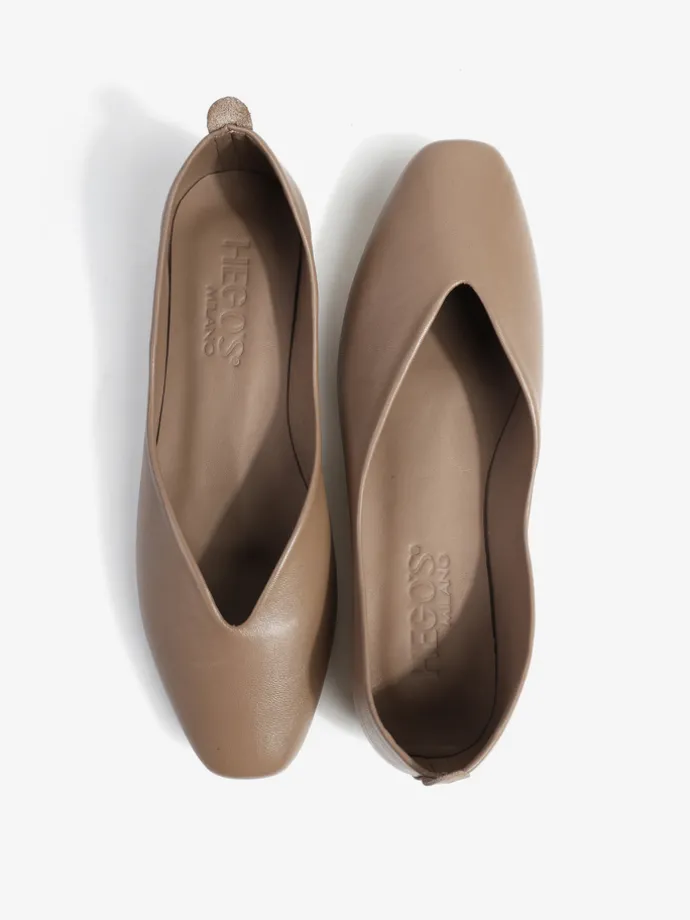 Baleriny wykonane z delikatnej, miękkiej skóry. Kwadratowy nosek i głębokie wycięcie w szpic.