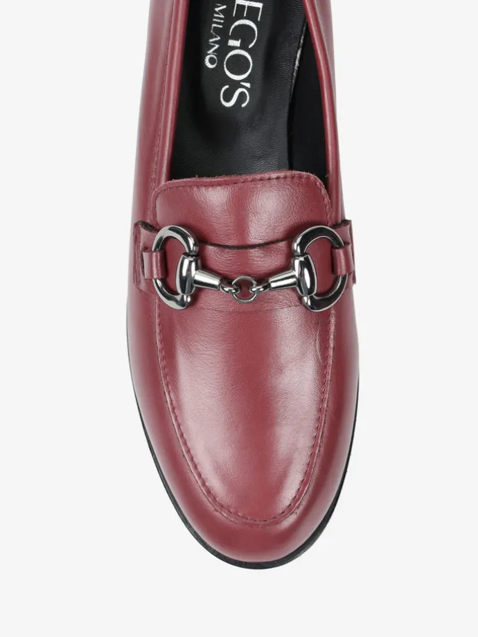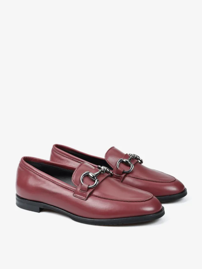 Mokasyny na płaskim obcasie wykonane są z włoskiej skóry naturalnej. Bordowa cholewka ozdobiona została wędzidłem. Wykonane z miękkiej i delikatnej skóry.