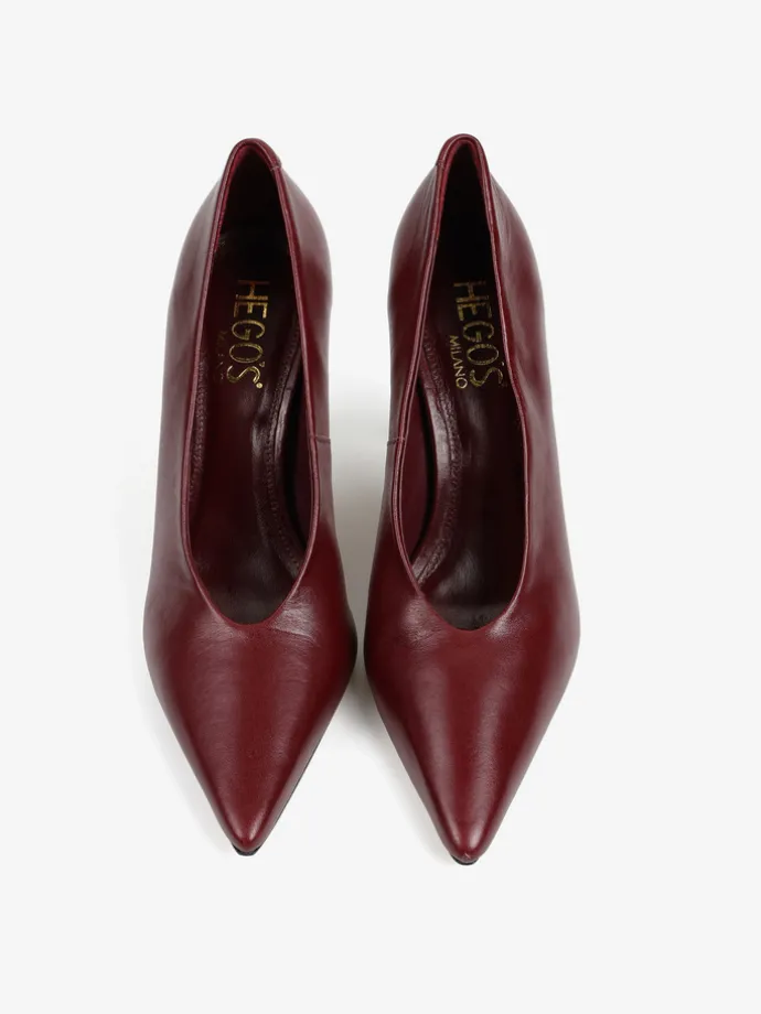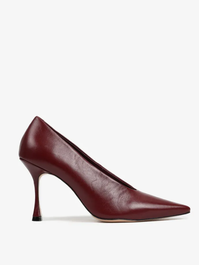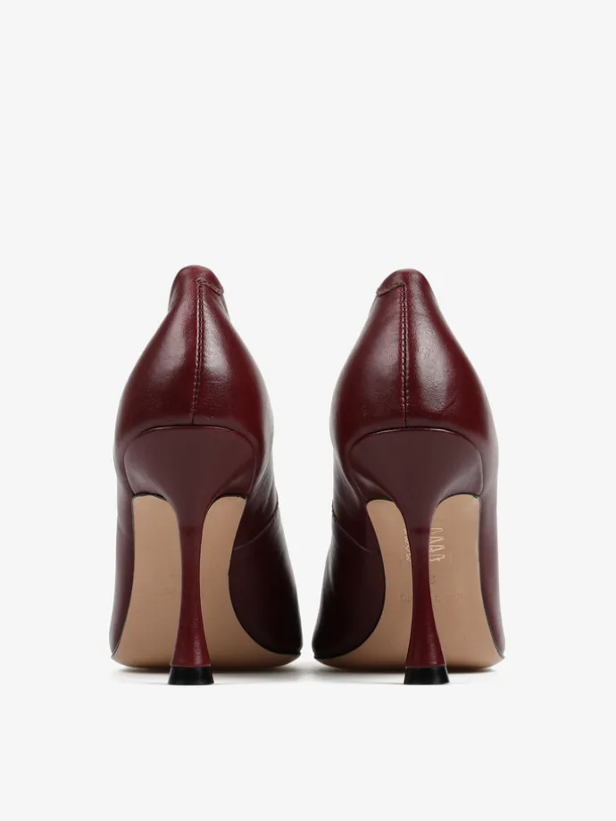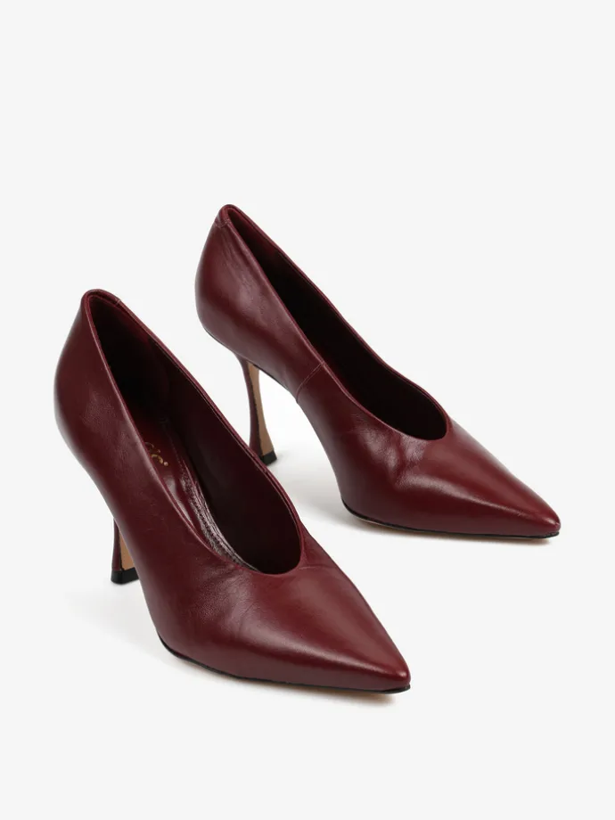 Szpilki na wysokim, delikatnie rozszerzanym obcasie. Owalne wycięcia z zabudowanymi brzegami i noski w szpic.