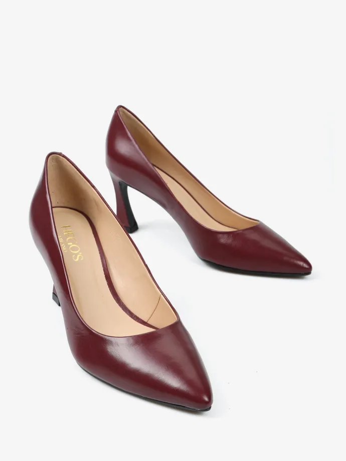 Klasyczne, bordowe szpilki z noskiem w szpic wykonane z miękkiej i delikatnej skóry.