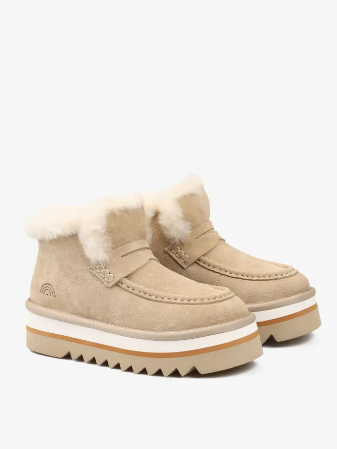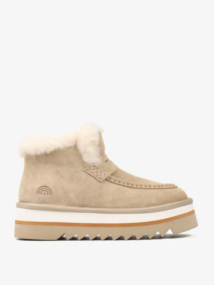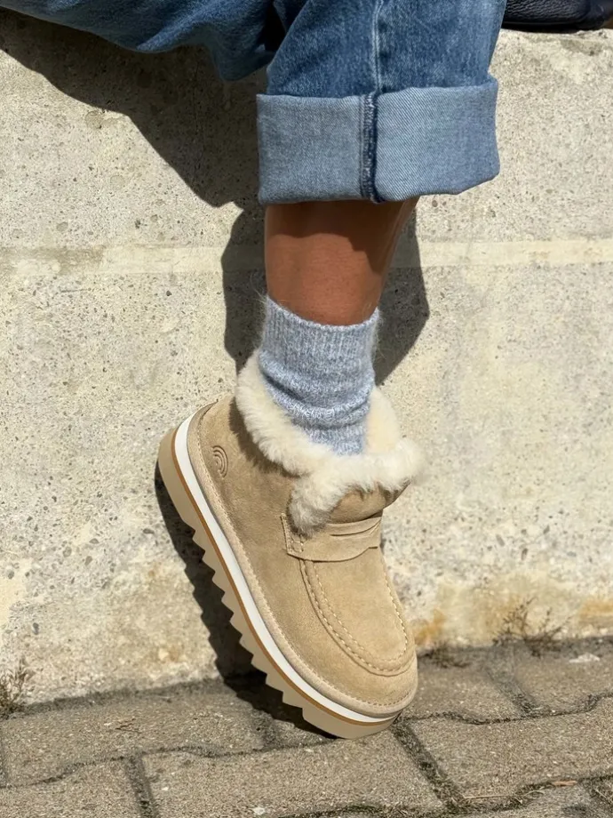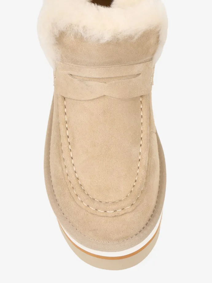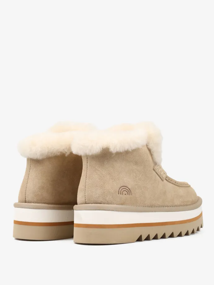 Zamszowe botki na platformie z wyściółką wykonaną z miękkiego, sztucznego futra.