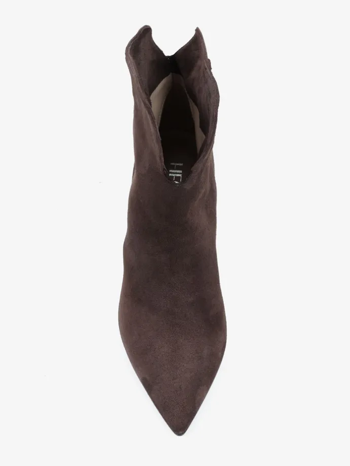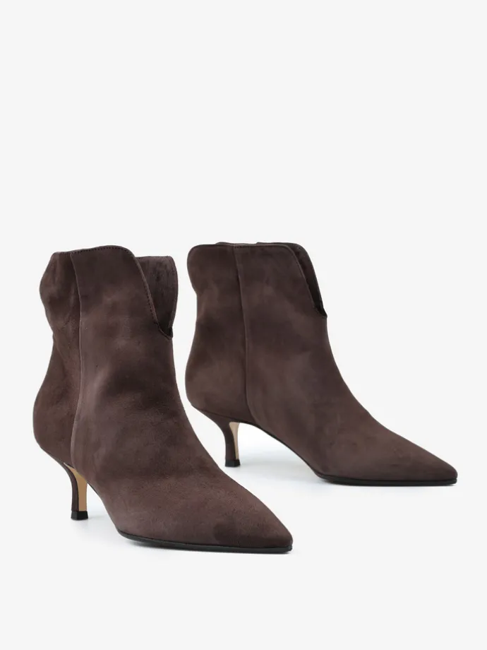 Botki na niskim obcasie to minimalistyczny model dla eleganckich kobiet. Wsuwana cholewka wykonana jest z naturalnego zamszu. Model z noskiem w szpic oraz wygodnym obcasem na szpilce. Botki damskie będą uzupełnieniem nie tylko casualowych stylizacji.