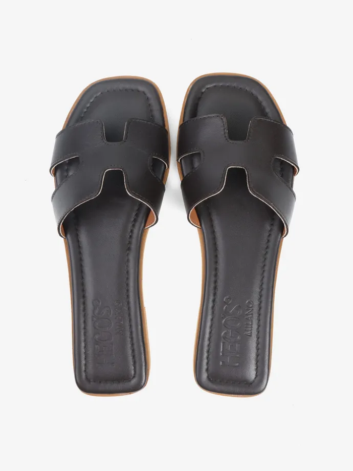 Modne, ciemnobrązowe klapki wykonane z miękkiej i delikatnej skóry.