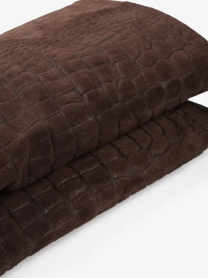 Kozaki na szpilce wykonane z zamszu tłoczonego w krokodyli wzór. Szeroka cholewka i noski w szpic.